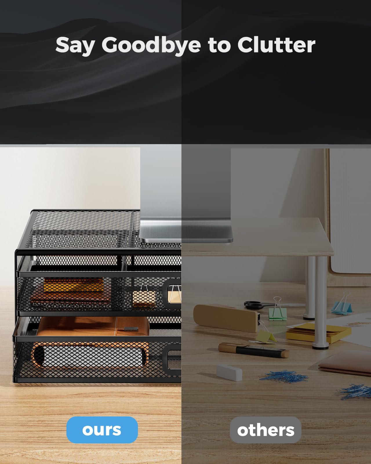 • 【Super Monitor Stand with 2 Drawers】- Store almost all of your small office supplies like pens, notebooks, smart phones, paper, documents etc., keeping your desk neat and tidy. A superb way to save space and decrease clutter.