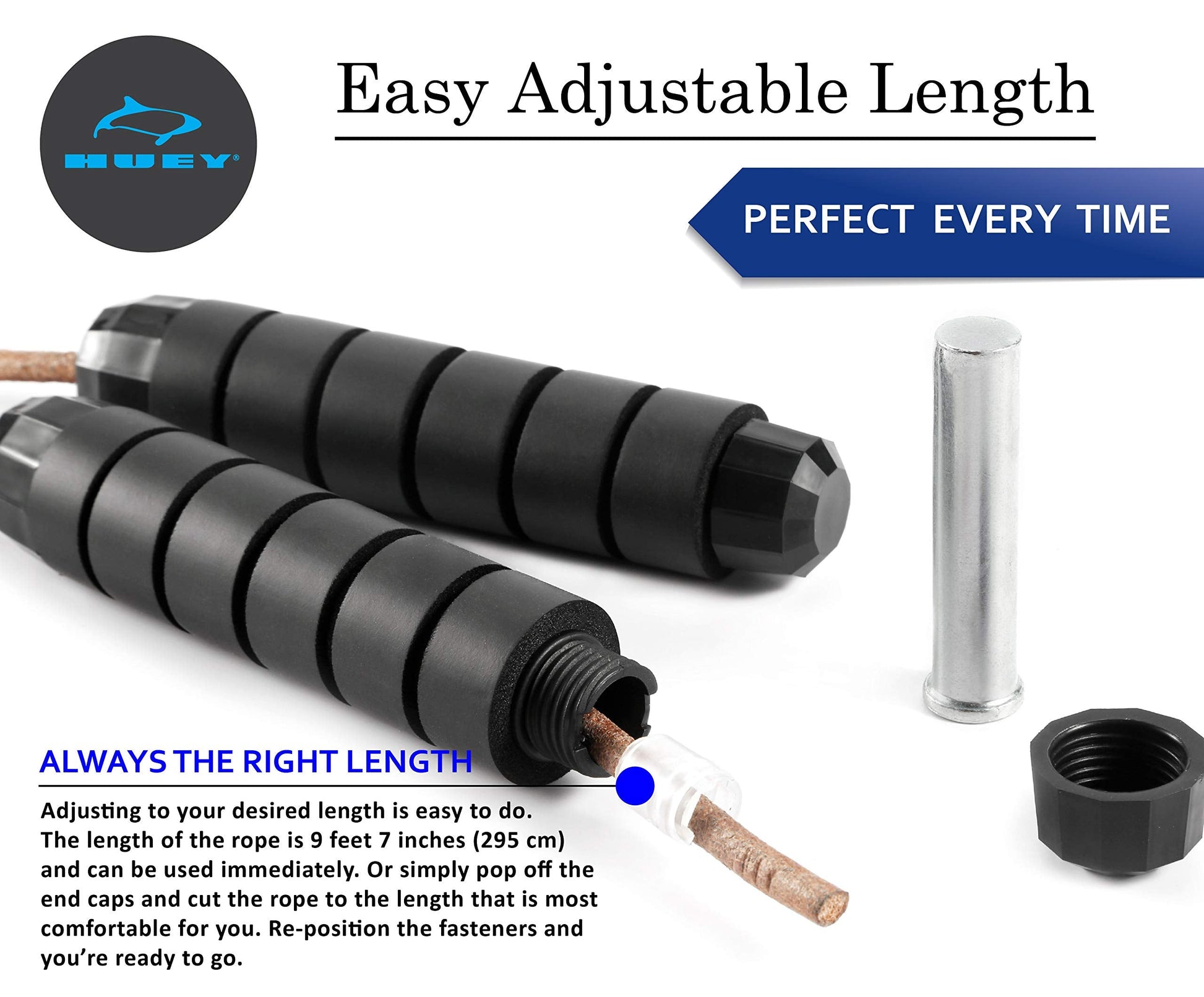 HUEY Sport Weighted 1lb Leather Jump Rope Adjustable Skipping Rope for Speed Quiet Training Boxing MMA Cardio Crossfit Fitness Workout Indoor and Outside Exercise for Beginner Kids Men and Women