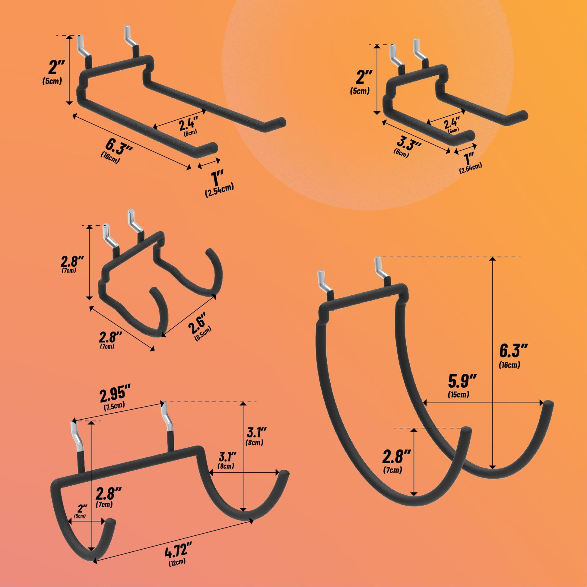 • Premium-grade Material: Our pegboard tool hooks are equipped with thick steel that prevent the hooks from deforming, and vinyl-coated finish protects your valuable items. Each pegboard tool holder can hold up to 20LB