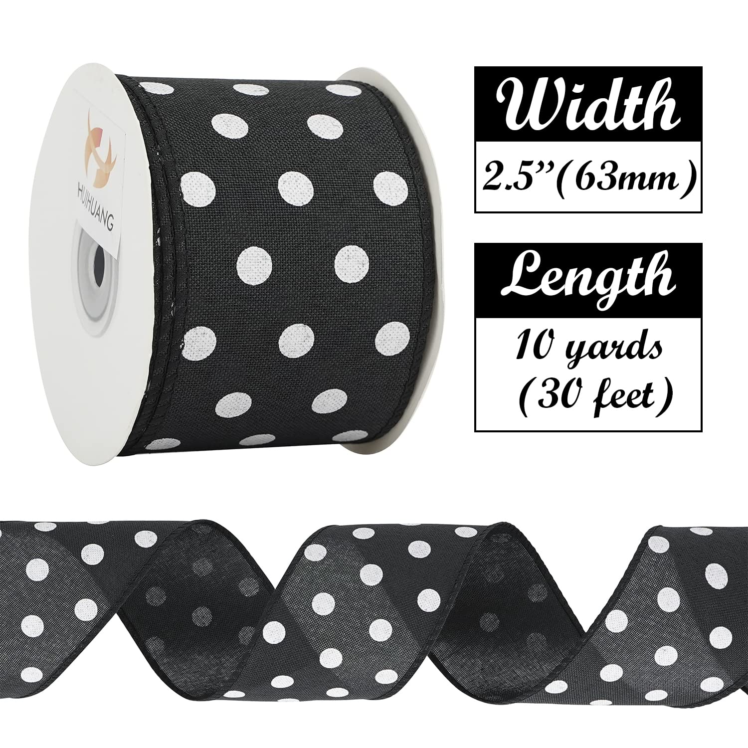 • [Size] 2.5'' by 10 Yards in black and white polka dot ribbon, perfect for wreaths, gift wrapping and much more.