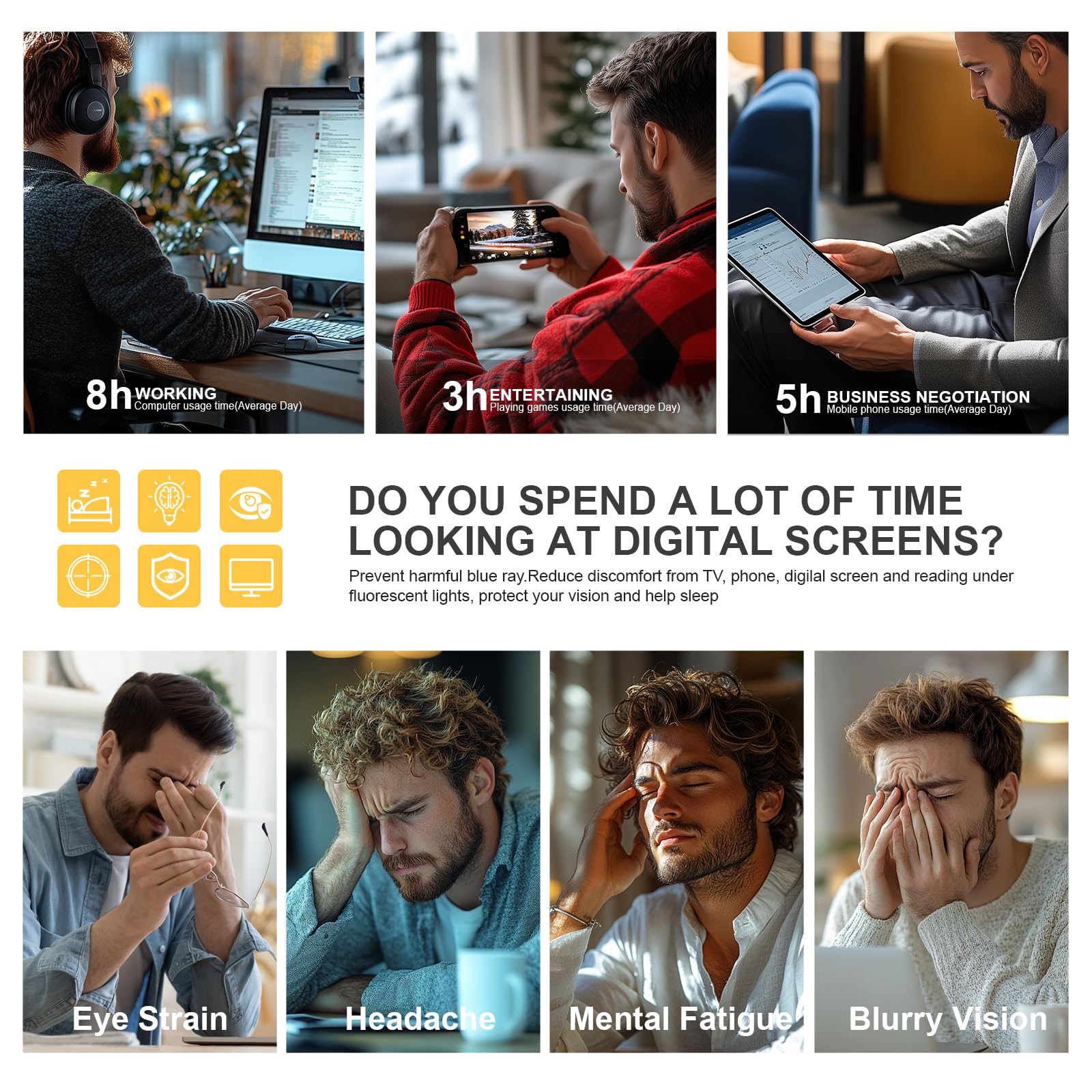 • Protection for Your Eyes : Anti Blue Light Glasses- the lens has UV400 protection, which can block 99.99% of the blue light. Protect your eyes from blue light when working for a long time or when surfing the Internet. Prevent headaches caused by blue light damage. Protect the quality of sleep.