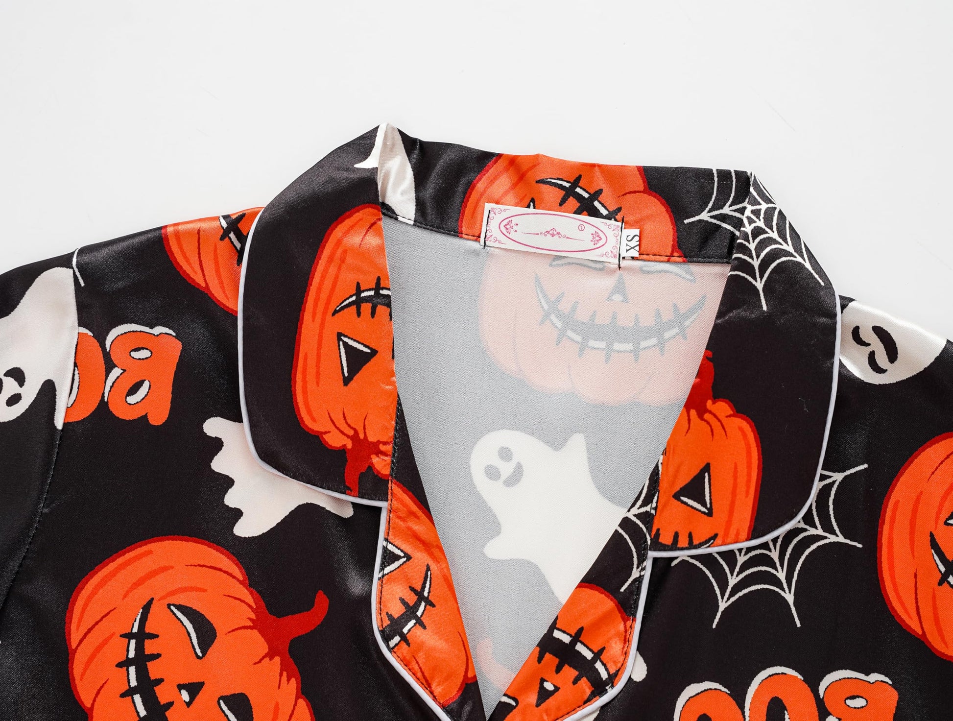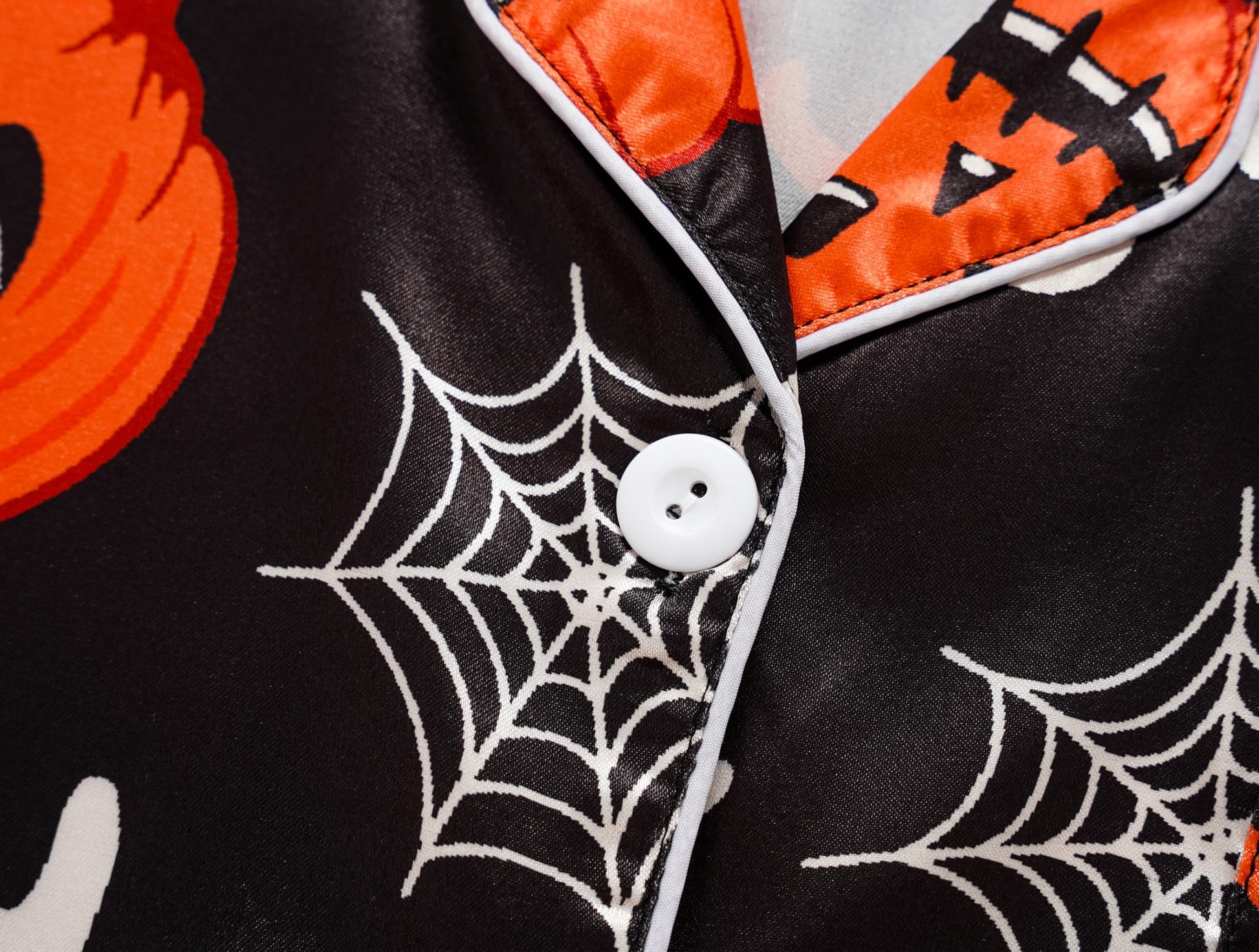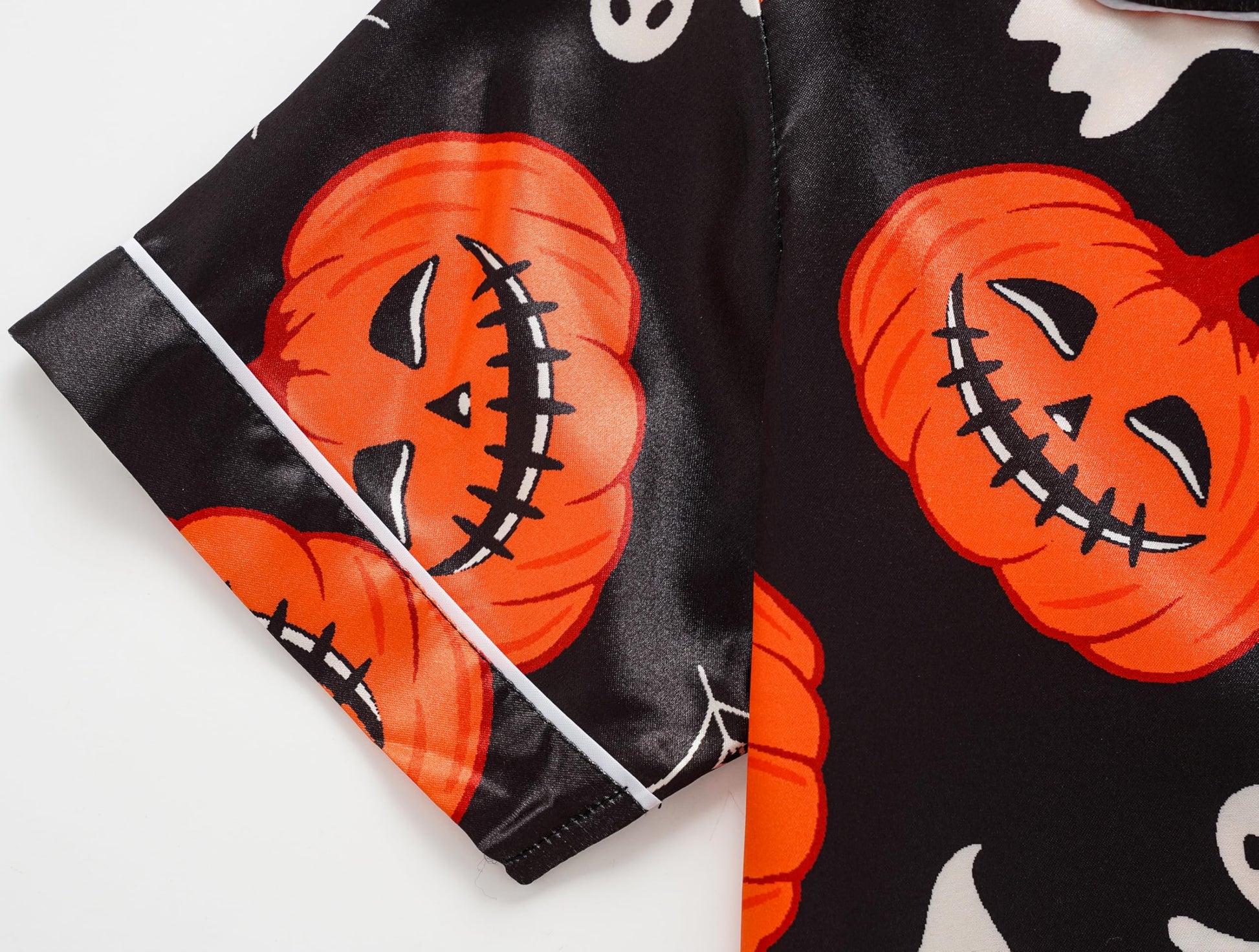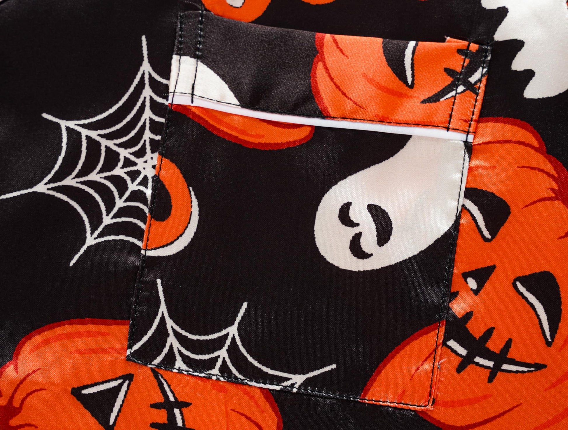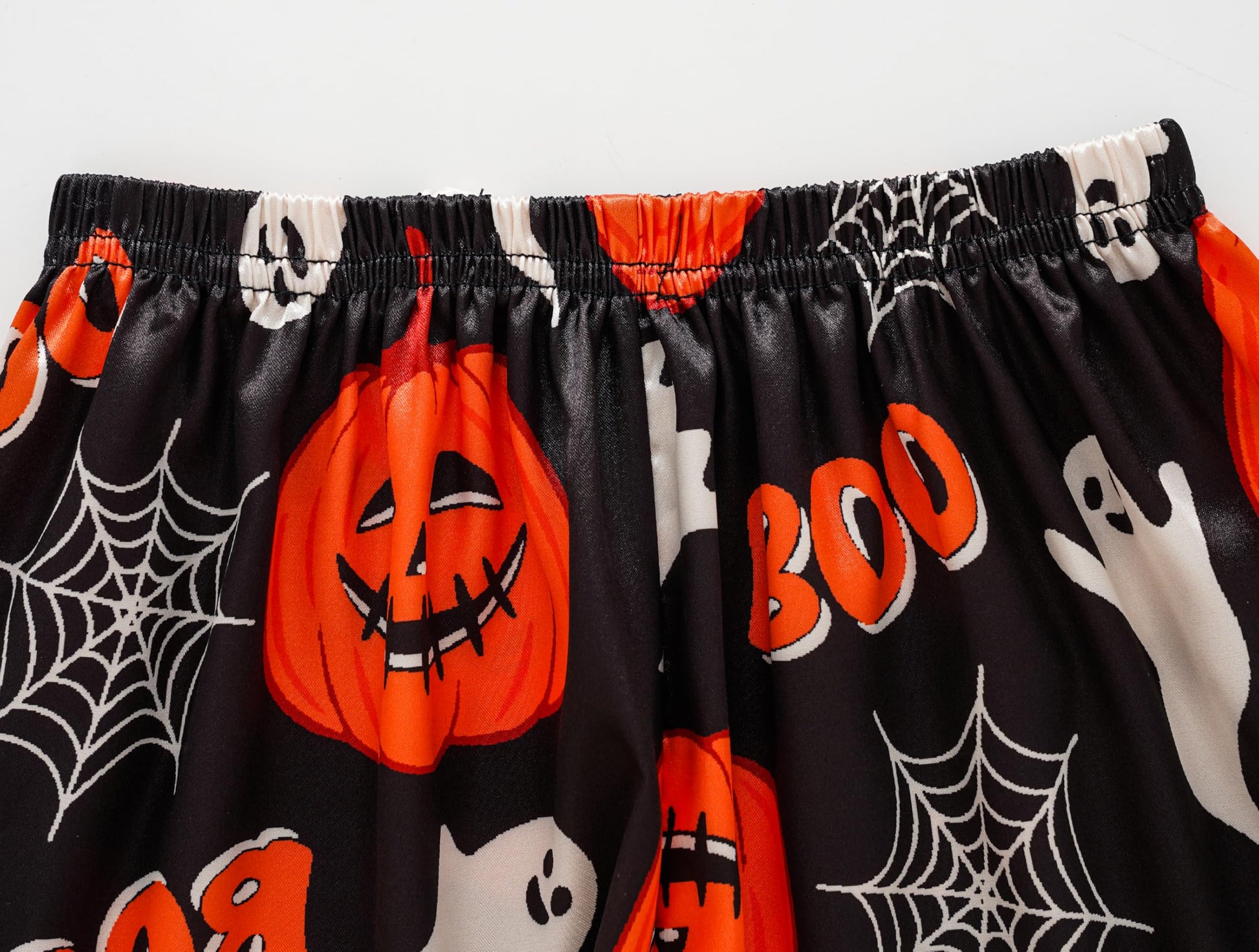 Hupohoi Unisex Girls Boys Kids Pajama Sets Button Down Satin Sleepwear Nighty 3PCS Silky Lounge Sets Nightwear Short Sleeve Long Pants, 3pcs-Pumpkin, 10