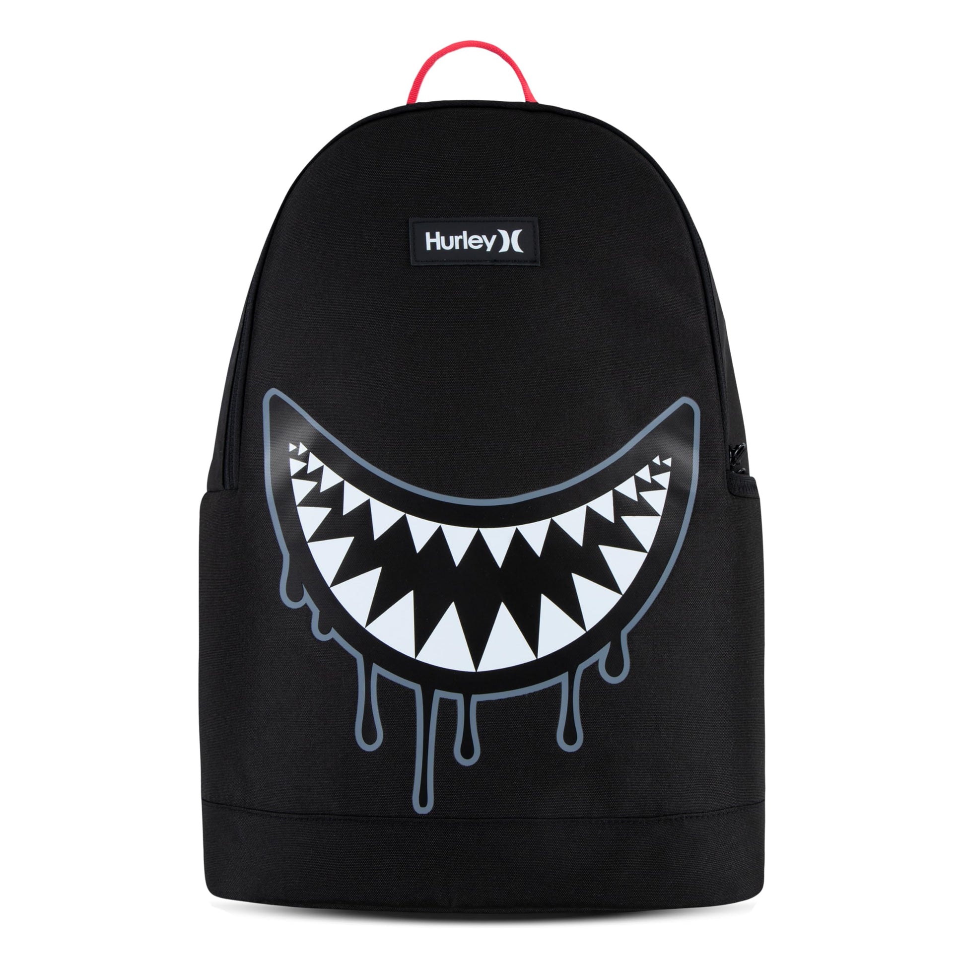 Featuring a toothy grin graphic print, the Hurley Kids' Graphic Backpack is a fun way to carry your books to class, a change of clothes to PE or anything else you want to carry. It's made of durable woven poly with a graphic print on the front that extends to panels that wrap around the sides. The 2-way zippered main compartment houses a laptop pocket, a valuables pocket on the top can be used to keep your most precious belongings in one place and out of the shuffle of the main compartment and the side bottle pocket can hold your favorite beverage.