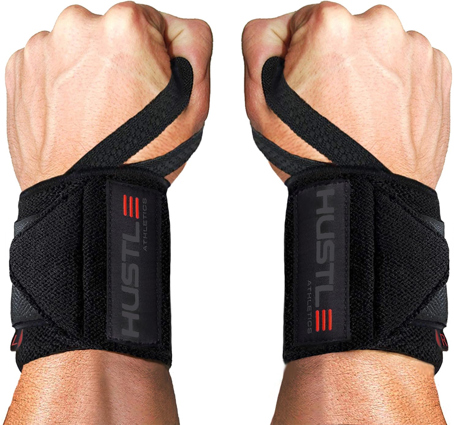 Hustle Athletics Wrist Wraps for Weightlifting - USPA Approved, Best Gym Wrist Straps for Weightlifting Wrist Support for Powerlifting, Bodybuilding & Strength Training - Thumb Loop for Men & Women