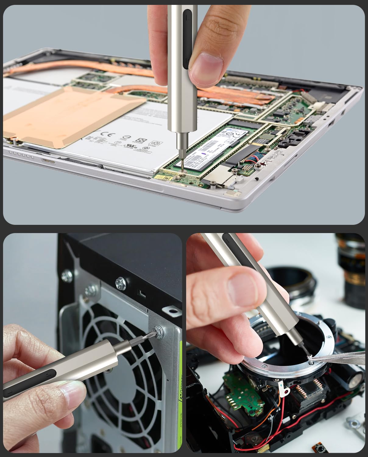 • Long-Lasting Battery: With a Built-in rechargeable long-lasting 330mAh battery, this mini electric screwdriver can be fully charged in 45 mins for continuously 90 mins of operation. The quick USB-C charging port allows you to charge the precision screwdriver set anywhere anytime