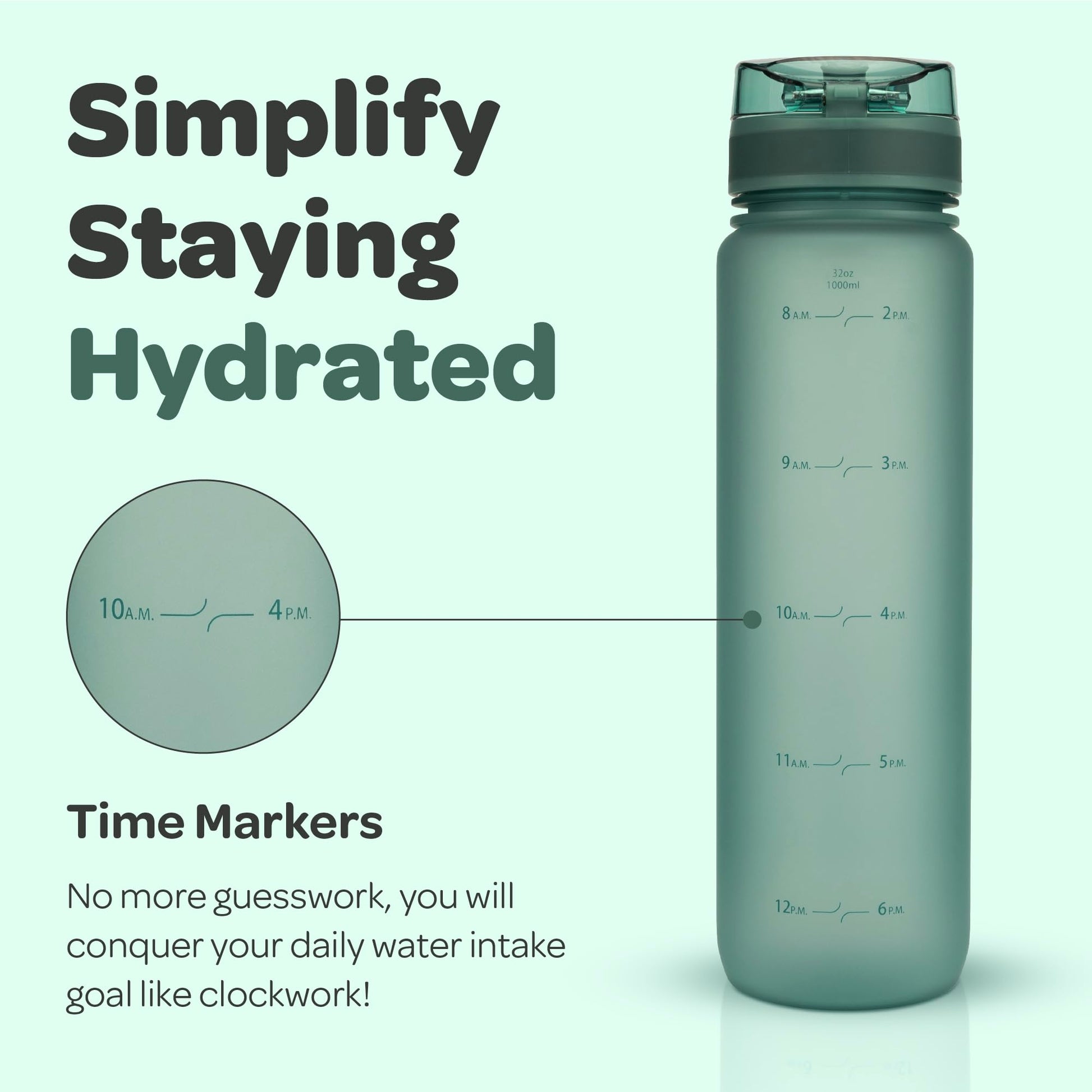 • 🕒MOTIVATIONAL WATER BOTTLE WITH TIME MARKER A quick glance at the intuitive timeline will tell you when to take your next sip throughout the day. No more guesswork, you will conquer your daily water intake goal like clockwork!