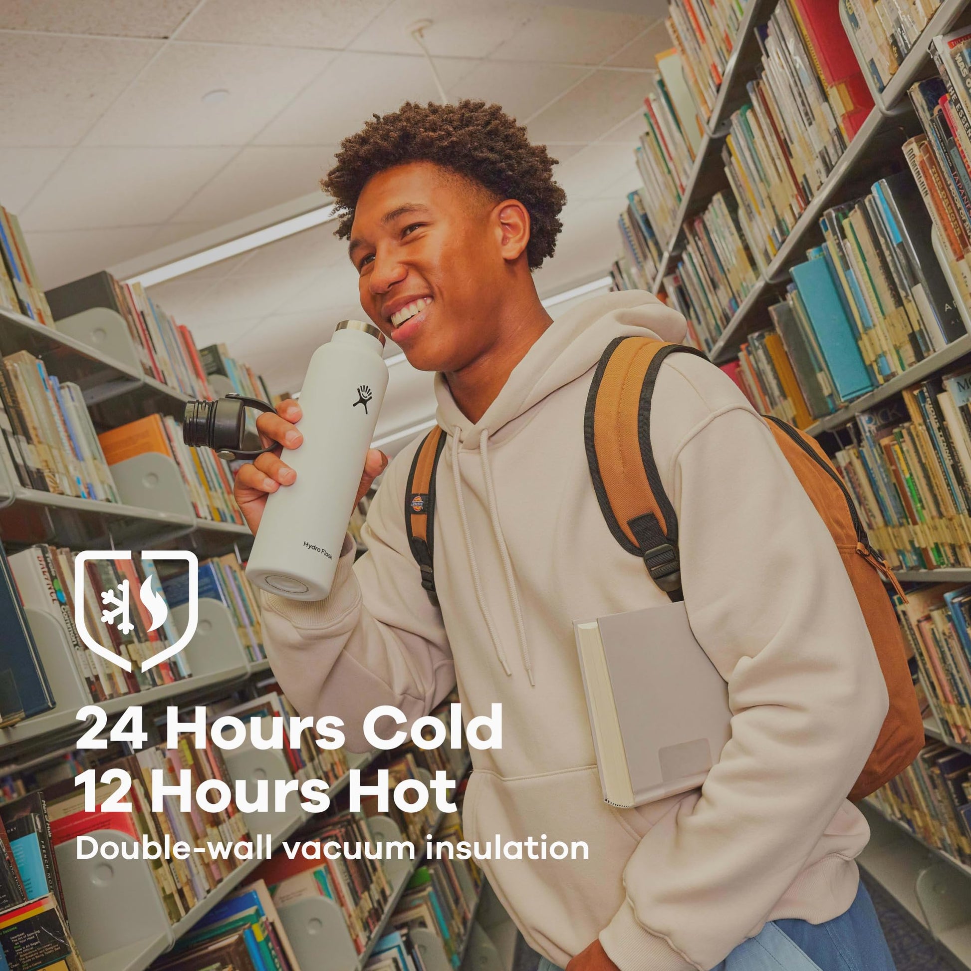 • 24 HOURS COLD. 12 HOURS HOT: The insulated water bottle keeps drinks cold for 24 hours and hot for 12 thanks to double-wall vacuum insulation. TempShield insulation is designed to be lightweight and efficient temperature retention, keeping contents ready to sip.