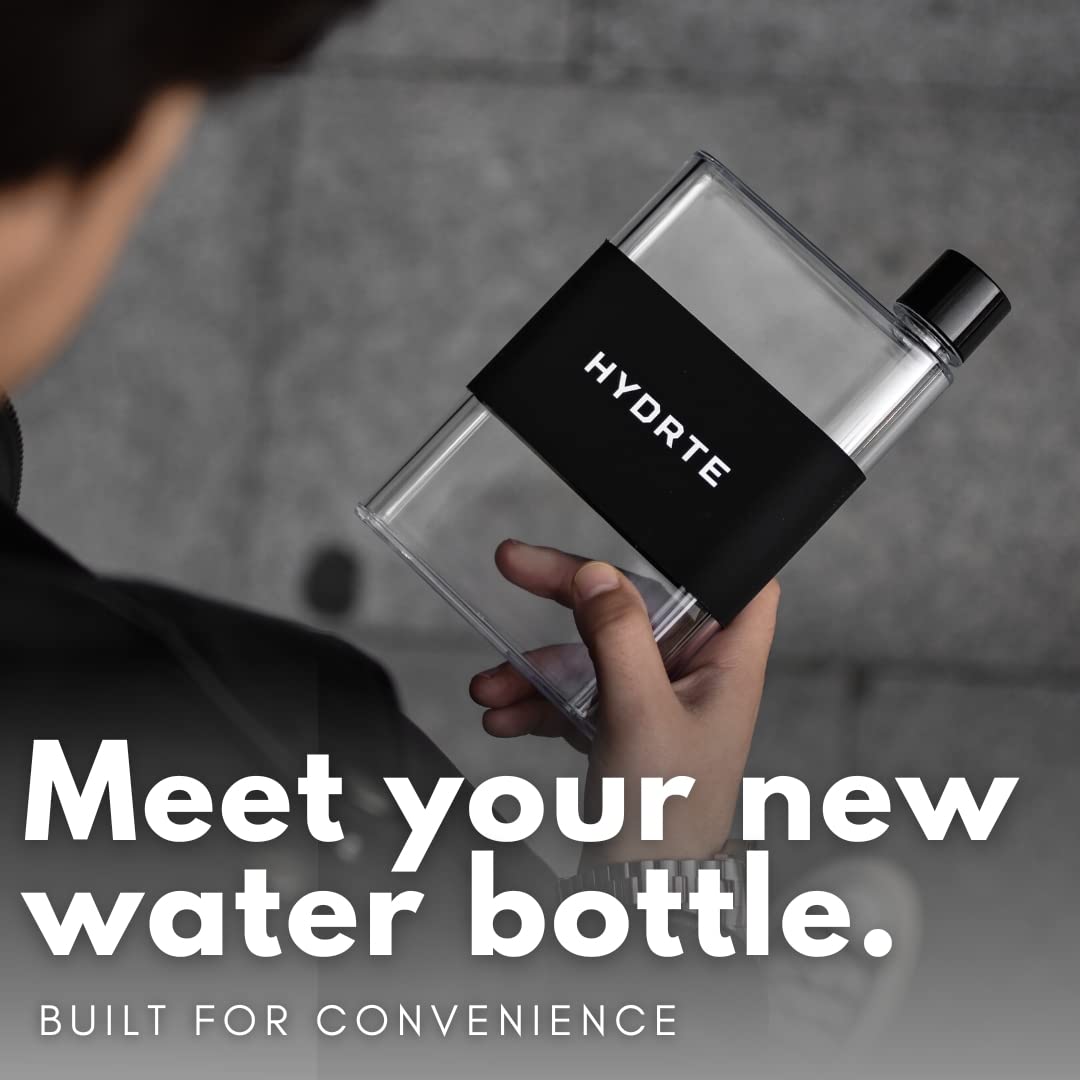 Hydrte Flat Water Bottle 11.8 oz, Leak Proof and Slim Design, The Purse Water Bottle, Cute Water Bottles made for Women and Men, BPA Free Square
