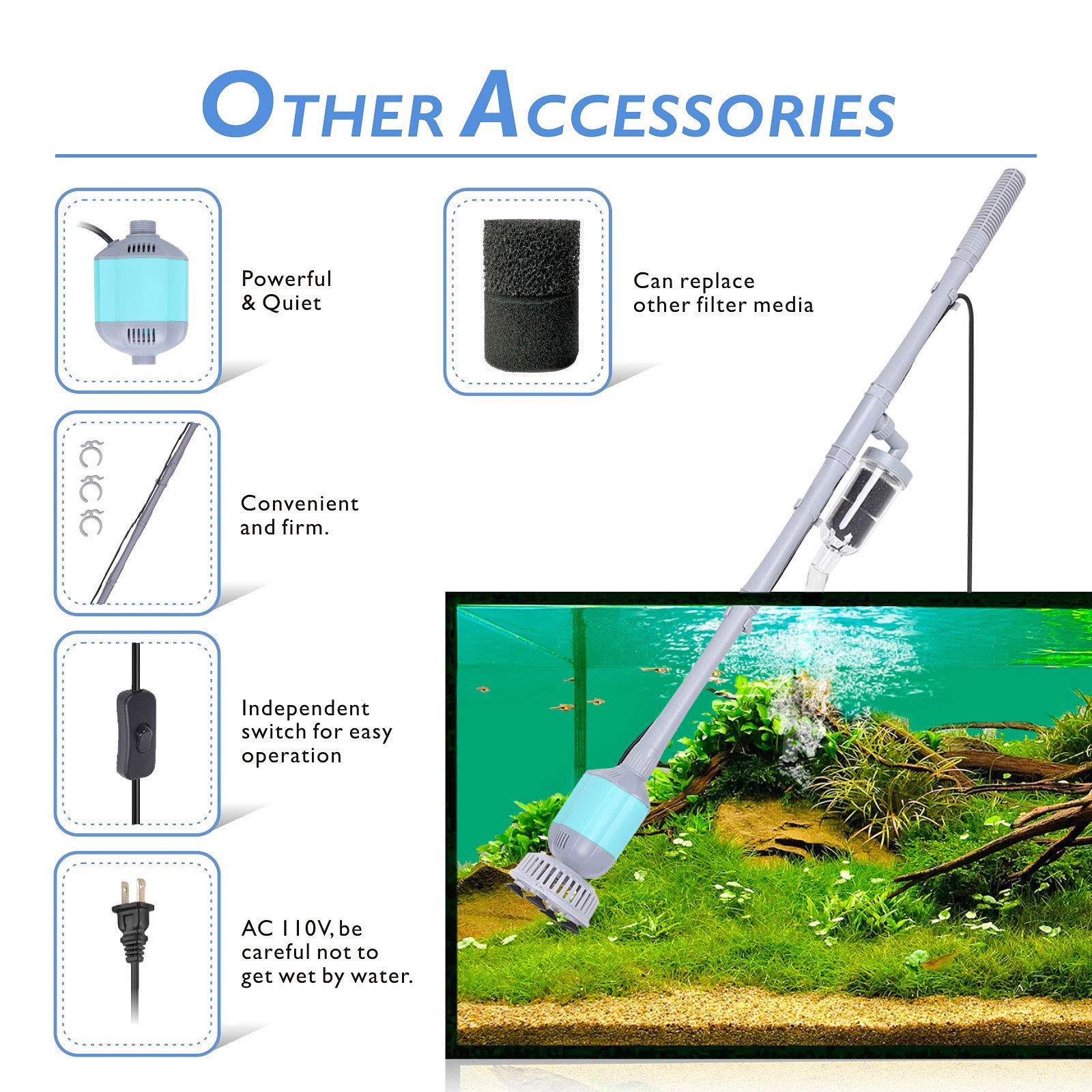 • 5 IN 1 MULTI-FUNCTION PUMP: Electric fish tank vacuum cleaner has high-density new plastic, detachable design, wear-resistant, lightweight, anti-fall. The adapter is AC 110V 60HZ, and the power supply has passed UL certification that is good to use. Independent switch control, easy to operate, no longer need to worry about unplugging the socket with wet hands