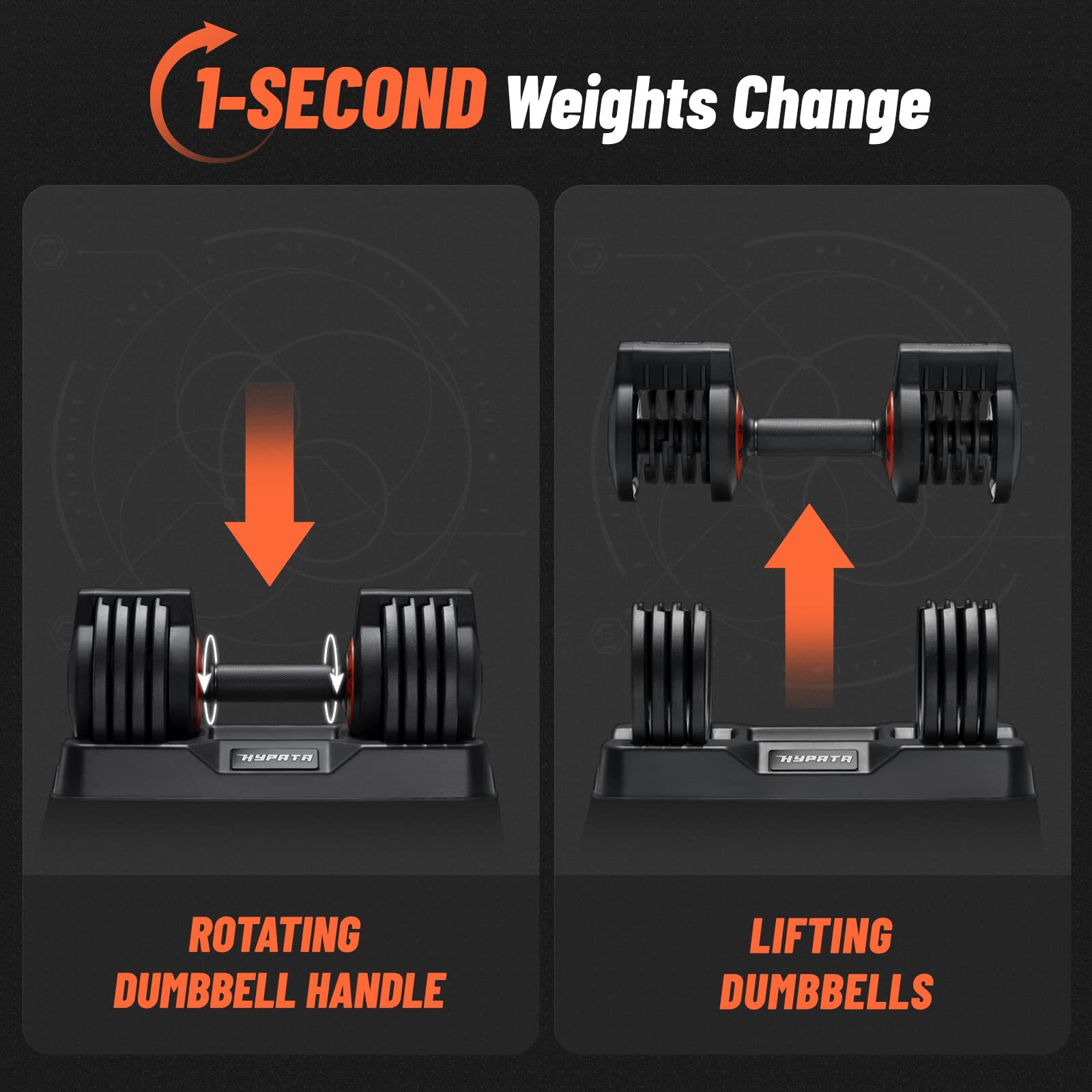 HYPATA 25 lbs Pair Adjustable Dumbbell Set, Fast Adjust Weight with Tray Suitable, Adjustable Dumbbells for Full Body Workout