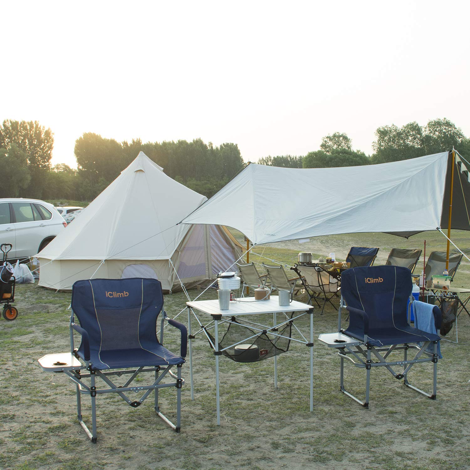 iClimb Heavy Duty Compact Camping Folding Mesh Chair with Side Table and Handle (Black, 2PC)