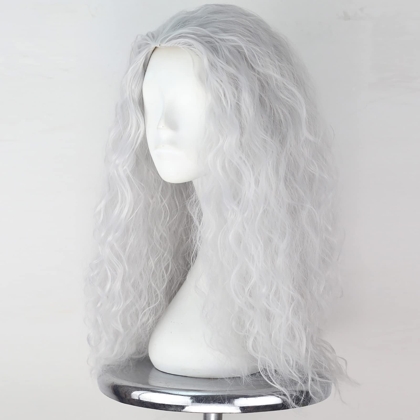 iCos Old Lady Wig - Long Curly Fluffy Dirty Silver Grey Witch Hair Wig for Grandma, Halloween Costume, Movie Cosplay, Punk Style - Adult Men & Women