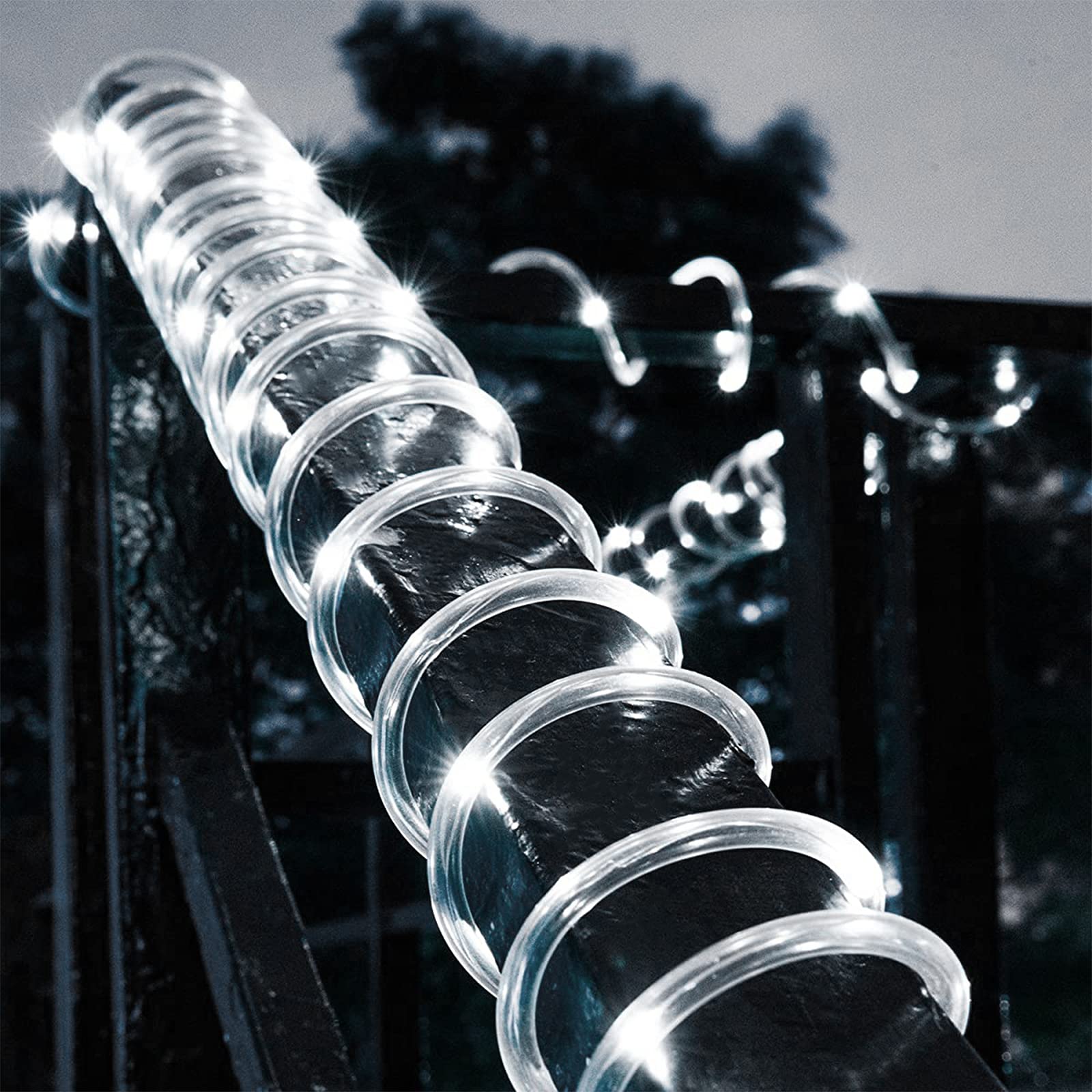 • [Supercharged Solar Power - Upgraded 1800mAh Battery!] 1800mAh high-capacity battery delivers ultra-fast charging, 40h runtime when fully charged, and longer solar lifespan. These energy-saving solar rope Christmas lights are 100% self-powered—no electricity bills, no need to change batteries! Smart sensor technology auto-turns the lights on at dusk and off at dawn for hassle-free outdoor glow. Tips: Please do not remove the protective film on the solar panel to prolong its service life.