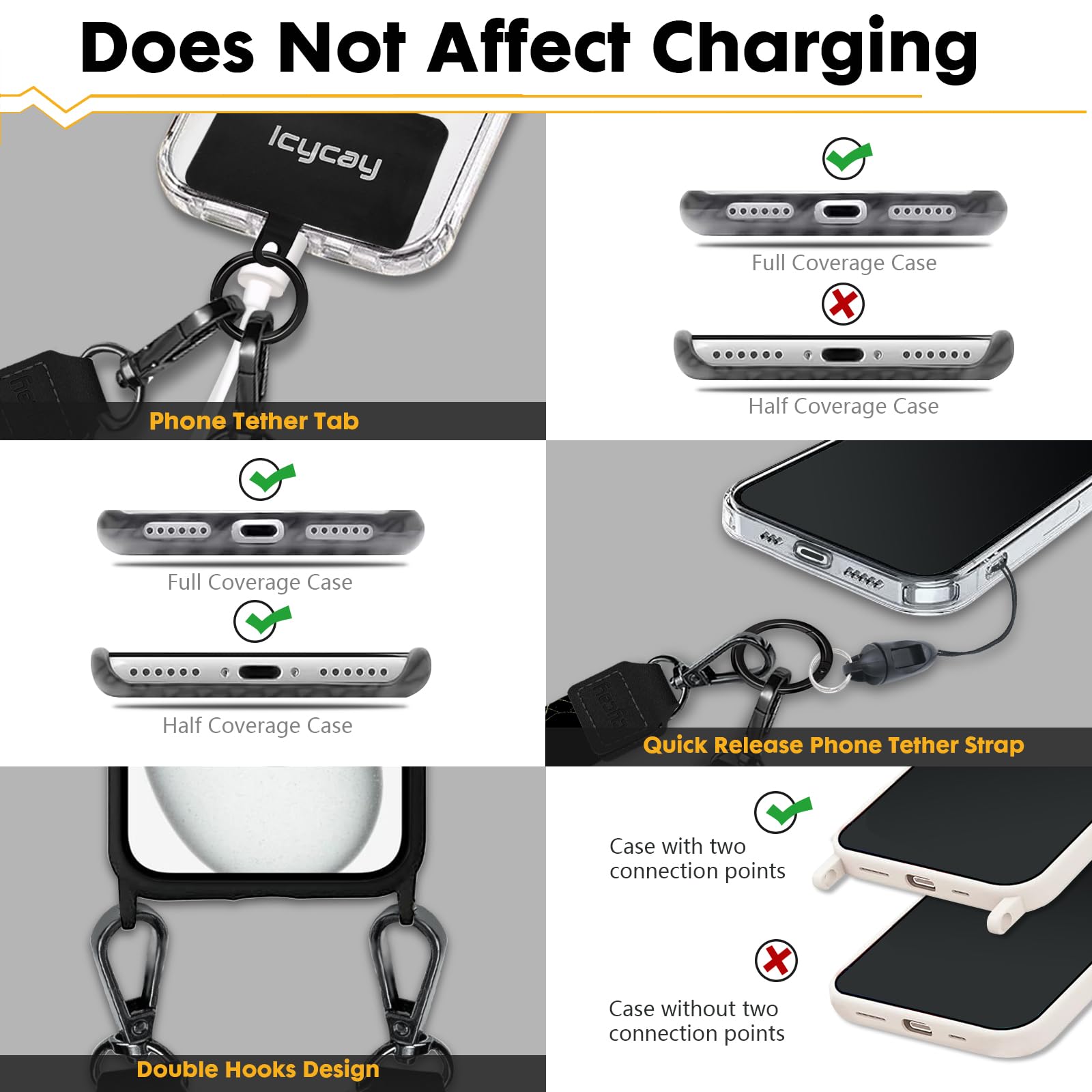 • Charging Convenience: The phone’s tether strap is sturdy and slim, without blocking the charging port or affecting wired and wireless charging functions, allowing you to charge your phone directly. It is compatible with most phones, making it easy for you to charge your phone