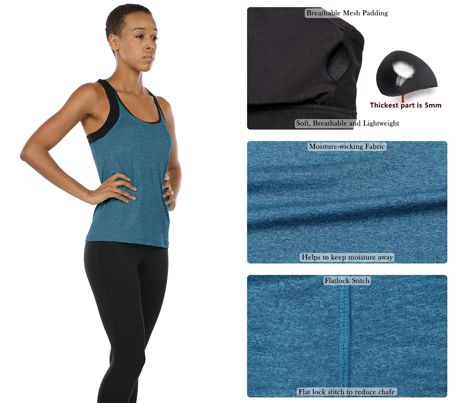 icyzone Women Workout Yoga Spaghetti Strap Racerback Tank Top with Built in Bra (S, Baltic)