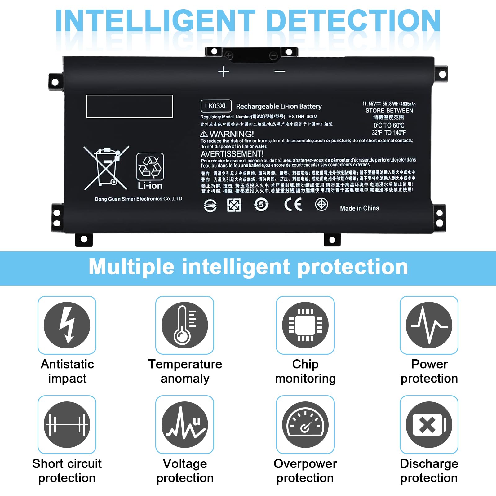 • Specification-Battery Type: Li-ion Capacity: 55.8 Wh; Cells: 3-cell; Voltage: 11.55V.Model: LK03XL LKO3XL