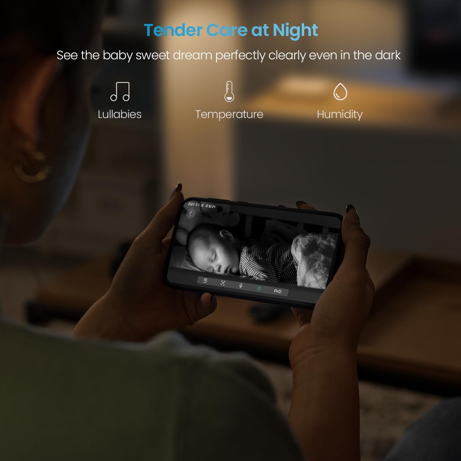 • 🔉Intelligent Care: Protect your little one with our smart baby monitor, featuring motion and sound detection sensors that alert you to any activity. Monitor the room's temperature and humidity levels for a comfortable environment, ensuring your baby's safety and well-being are always prioritized.