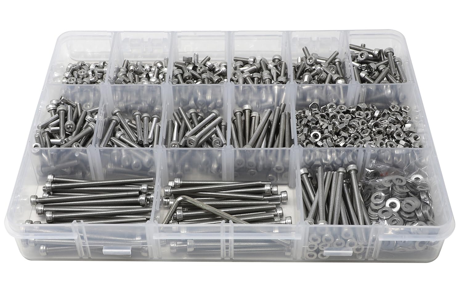 iexcell 1500 Pcs M3 x 4/6/8/10/12/16/20/25/30/35/40/45/50 Stainless Steel 304 Hex Socket Head Cap Screws Blots Nuts Washers Assortment Kit
