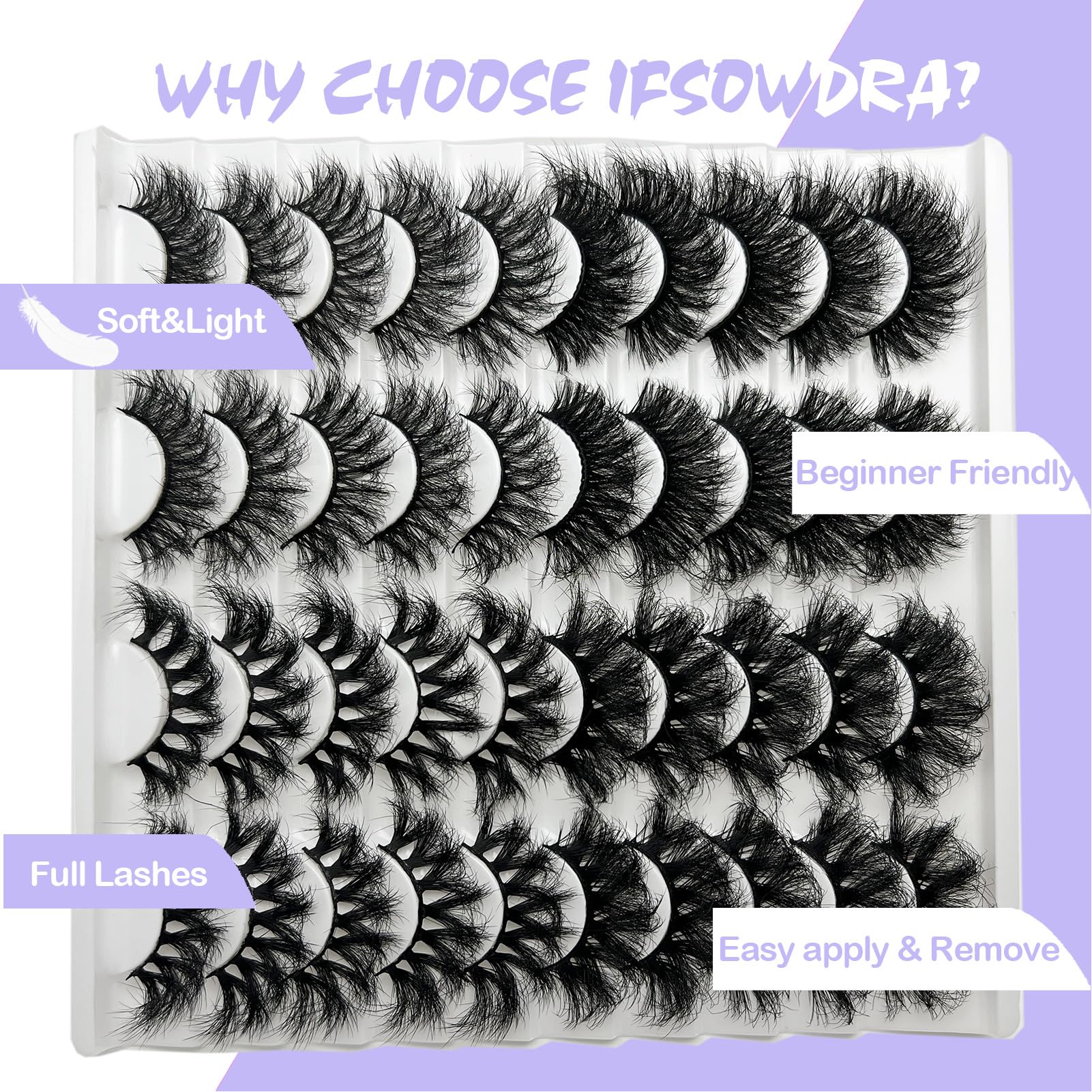 IFSOWDRA Mink Lashes Strip D Curl Volume 20/25mm Long Dramatic Lashes 3D Mink Cat Eye Eyelashes Pack, Wispy False Eyelashes Natural Look (4 Styles)