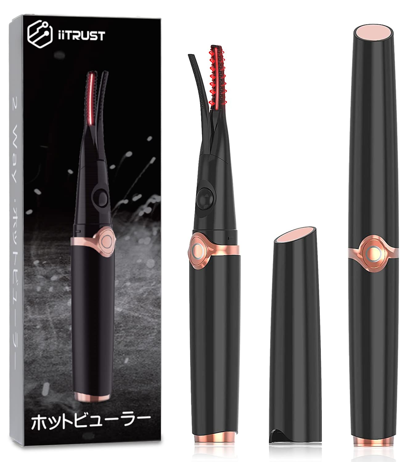iitrust Hot Eyelash Curler, 2-in-1, Long Keeping, 3-Stage Temperature Adjustment, 10 Seconds Rapid Preheating, Automatically Power Off, USB Powered, Easy to Carry, Black