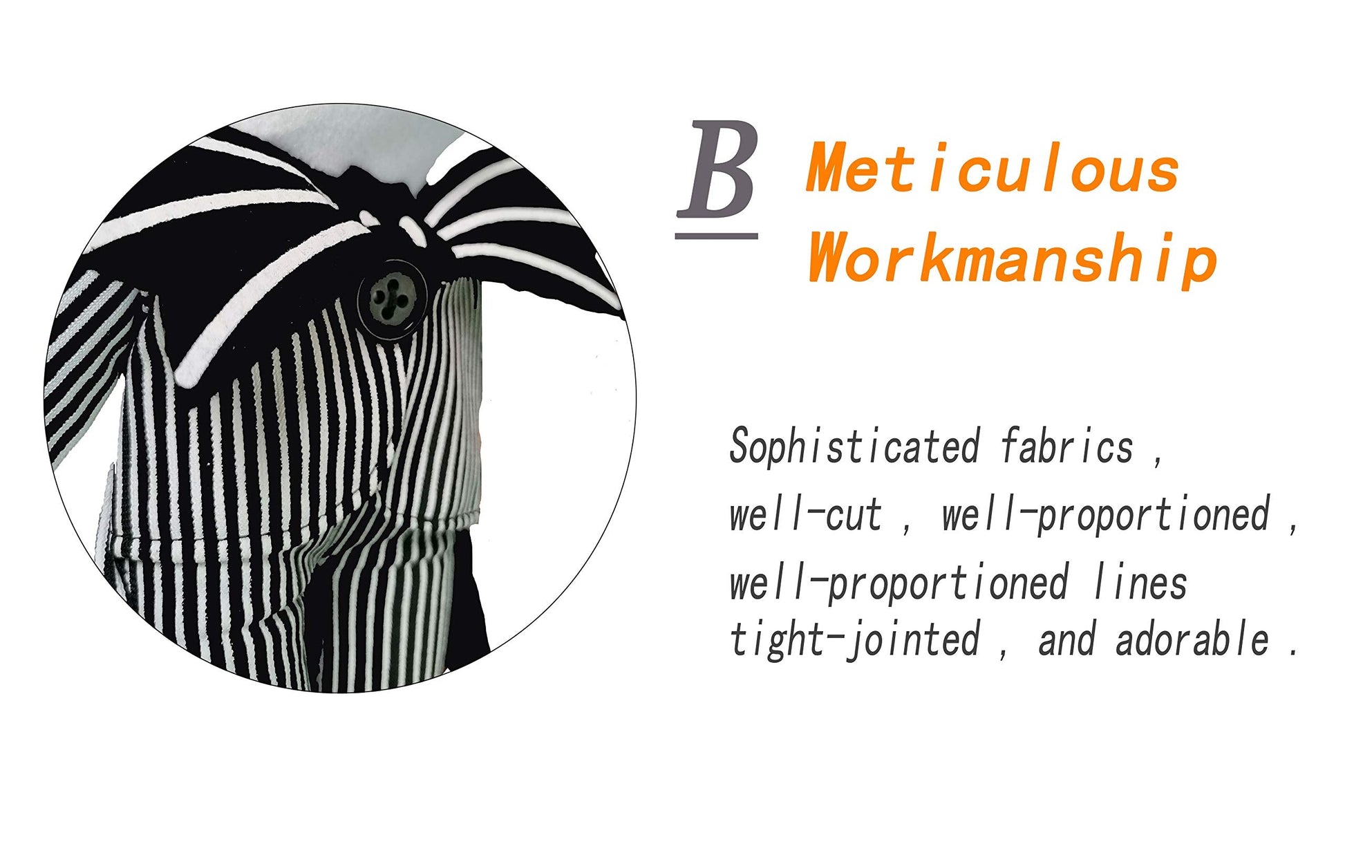 • HIGH QUALITY: We used the highest quality %100 polyester microfiber to make our Jack Skellington nightmare doll, to make sure that he can be cuddled for years and not wear out, and still be extremely soft to touch. Besides, to your family’s safety, we used 100% non-toxic products to make him, and no choking hazard to make sure your loved ones are not at risk.