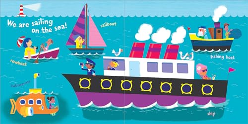 Baby’s sailing on the sea—along with a ship, a sailboat, and a submarine!