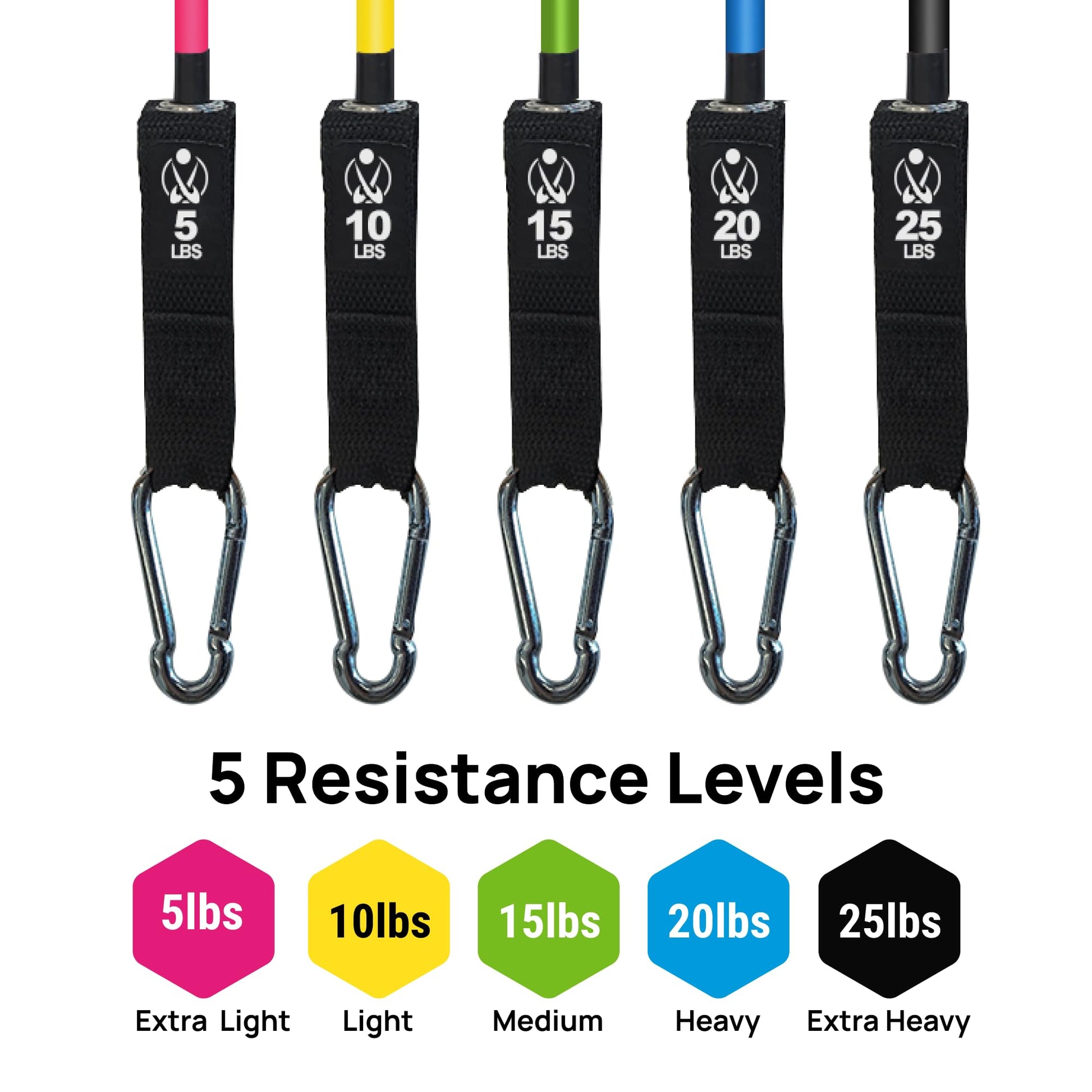 • 150 LBS Adjustable Resistance: INEVIFIT resistance bands offer 5 color-coded bands with different resistance levels (Pink - 5 lbs, Yellow- 10 lbs. Green- 15 lbs, Blue- 20 lbs, Black- 25 lbs). Stack the bands together to reach up to 150 lbs, perfect for any fitness level, from beginner to expert.