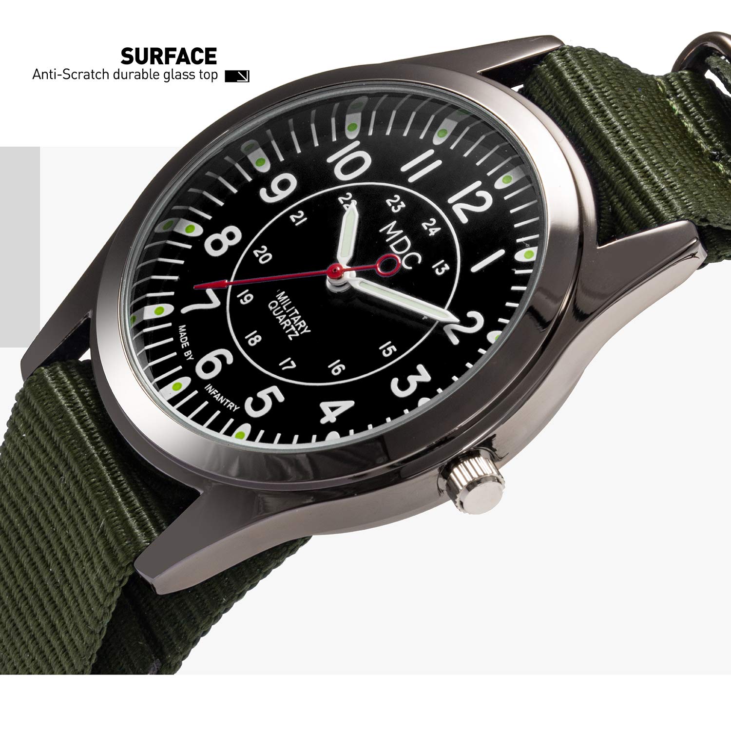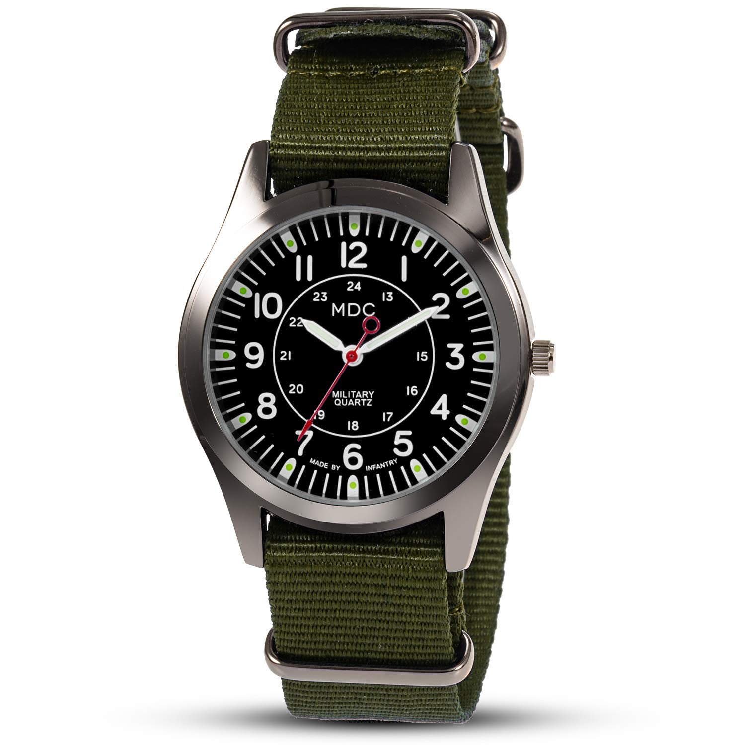 Infantry Black Military Watches for Men Tactical Wrist Watch Outdoor Sport Field Analog Work Army Wristwatch Men's Green Nylon Band by MDC