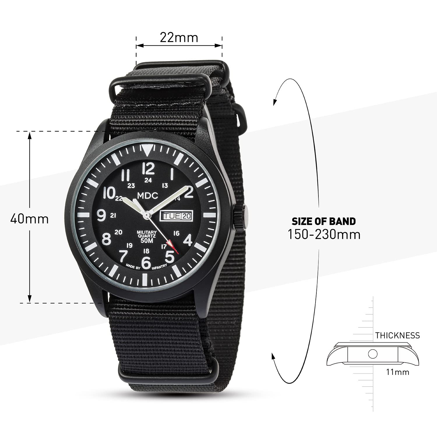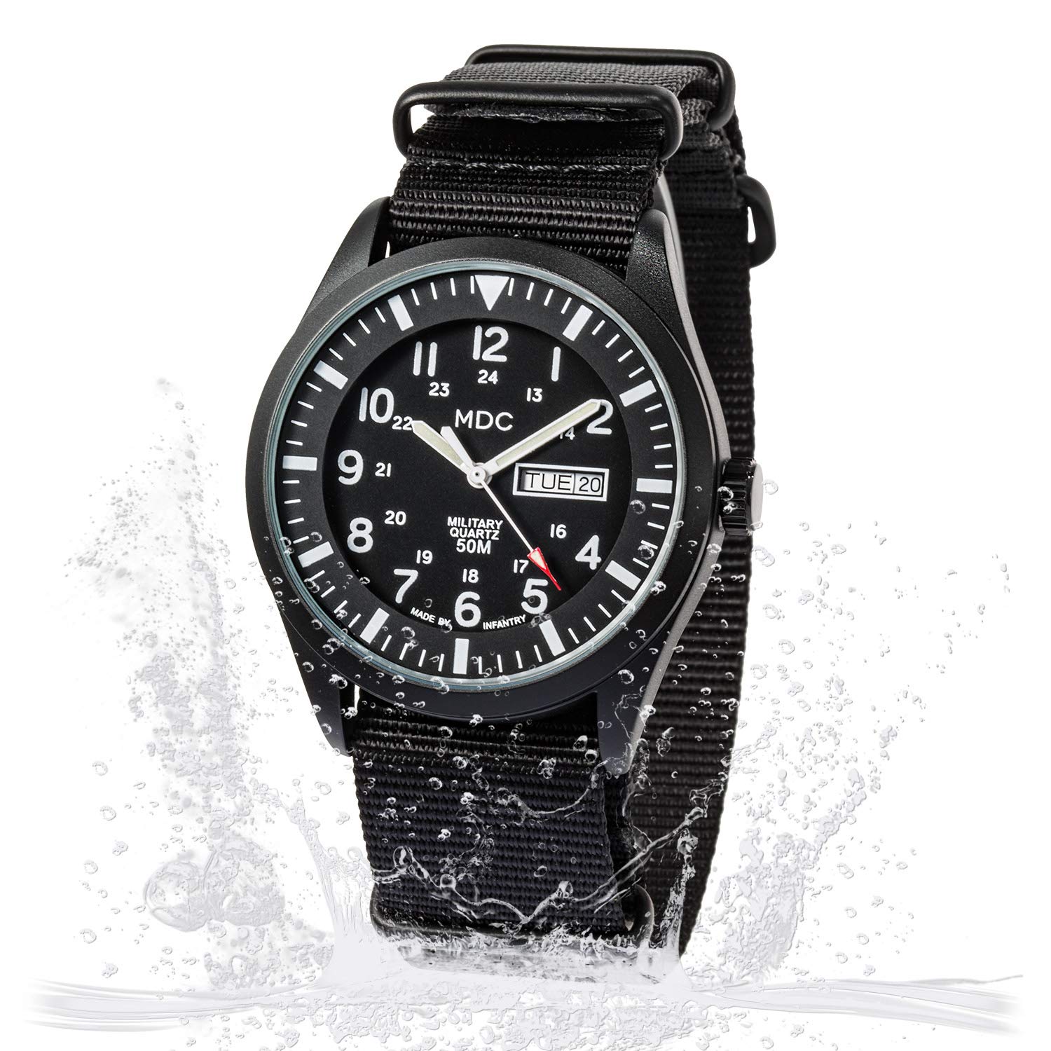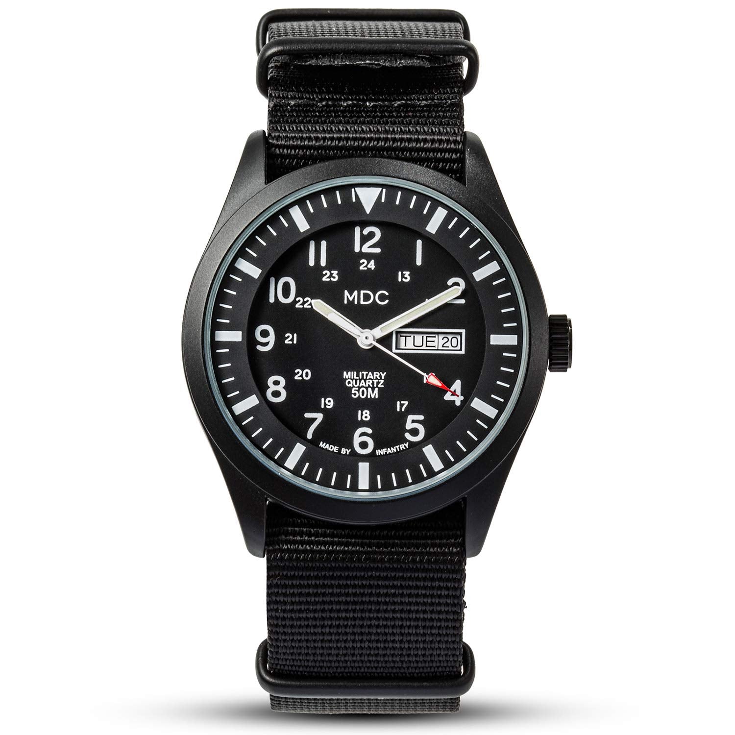Infantry Men's Wrist Watch Field Military Watches for Men Analog Black Tactical Outdoor Sport Work Wristwatch Waterproof Date Day 12/24 Hour with Army Nylon Band
