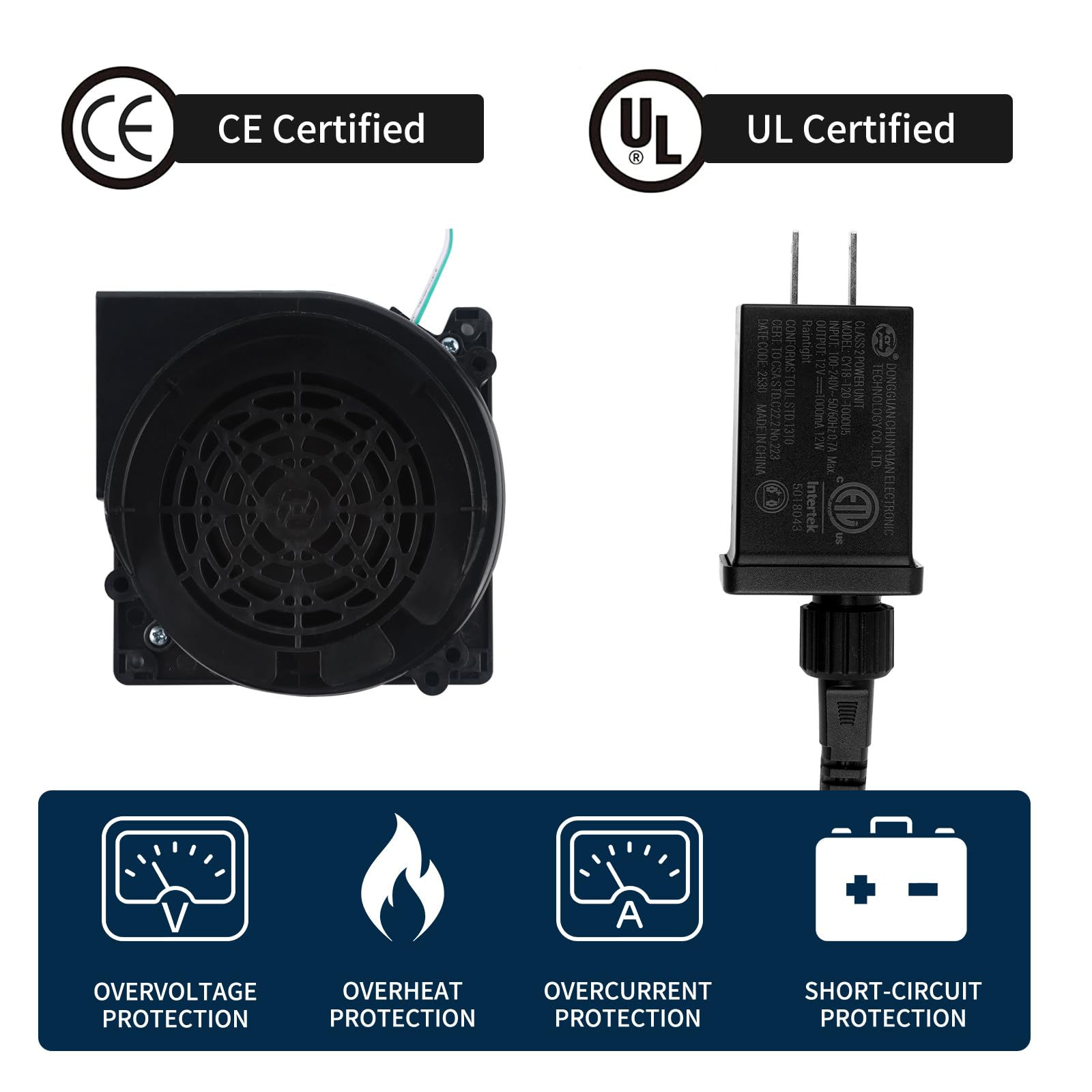 • Stable Power Supply: This replacement inflatable air blower includes a ETL Listed power adapter that works with most household power supplies in the USA. This power adapter is designed for low voltage device and is suitable for some Christmas trees, string lights, projector lights, lawn lights, Christmas inflatables, banner lights and more. Note:Please check the volts, currents, watts and the +/- prong connector if it fits for your device or not when you use it
