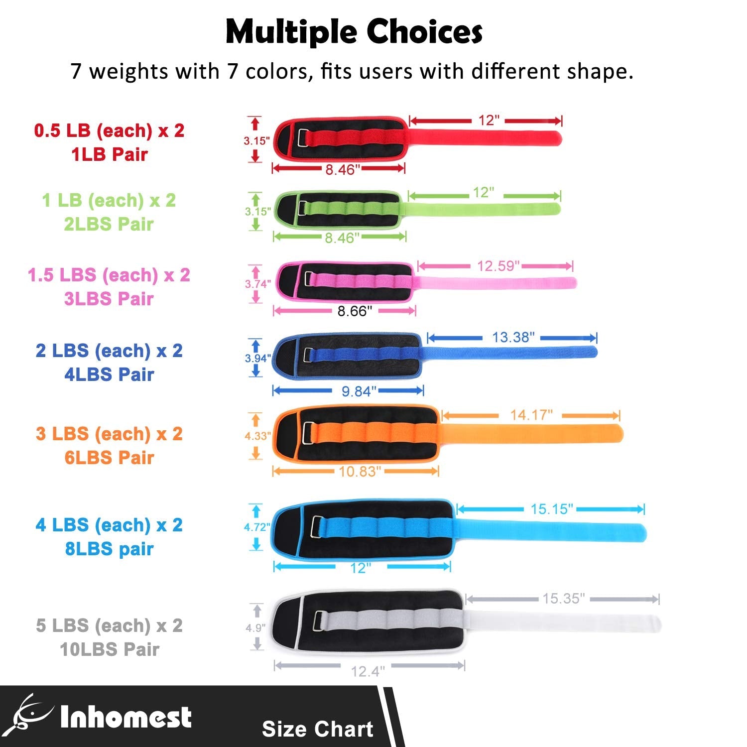 • Pair - All sizes come in pair. Ankle weight set available [regular weighted] : Red - 1lb pair (0.5 lbs each), Green - 2lbs pair (1 lb each), Purple - 3lbs pair (1.5 lbs each), Blue - 4lbs pair (2 lb each), Orange - 6lbs pair (3 lb each), Sky Blue - 8lbs pair (4 lb each), Grey - 10lbs pair (5 lb each).