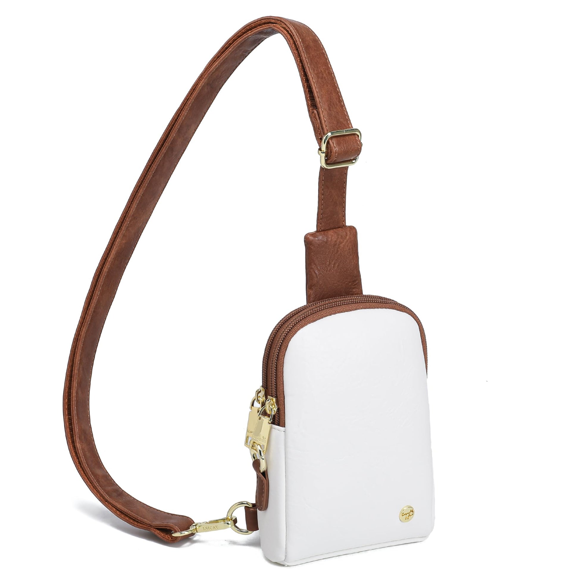 INICAT Sling Bag for Women Touchscreen Small Crossbody Cell Phone Purse Fanny Pack(White Brown Anti Theft Small)