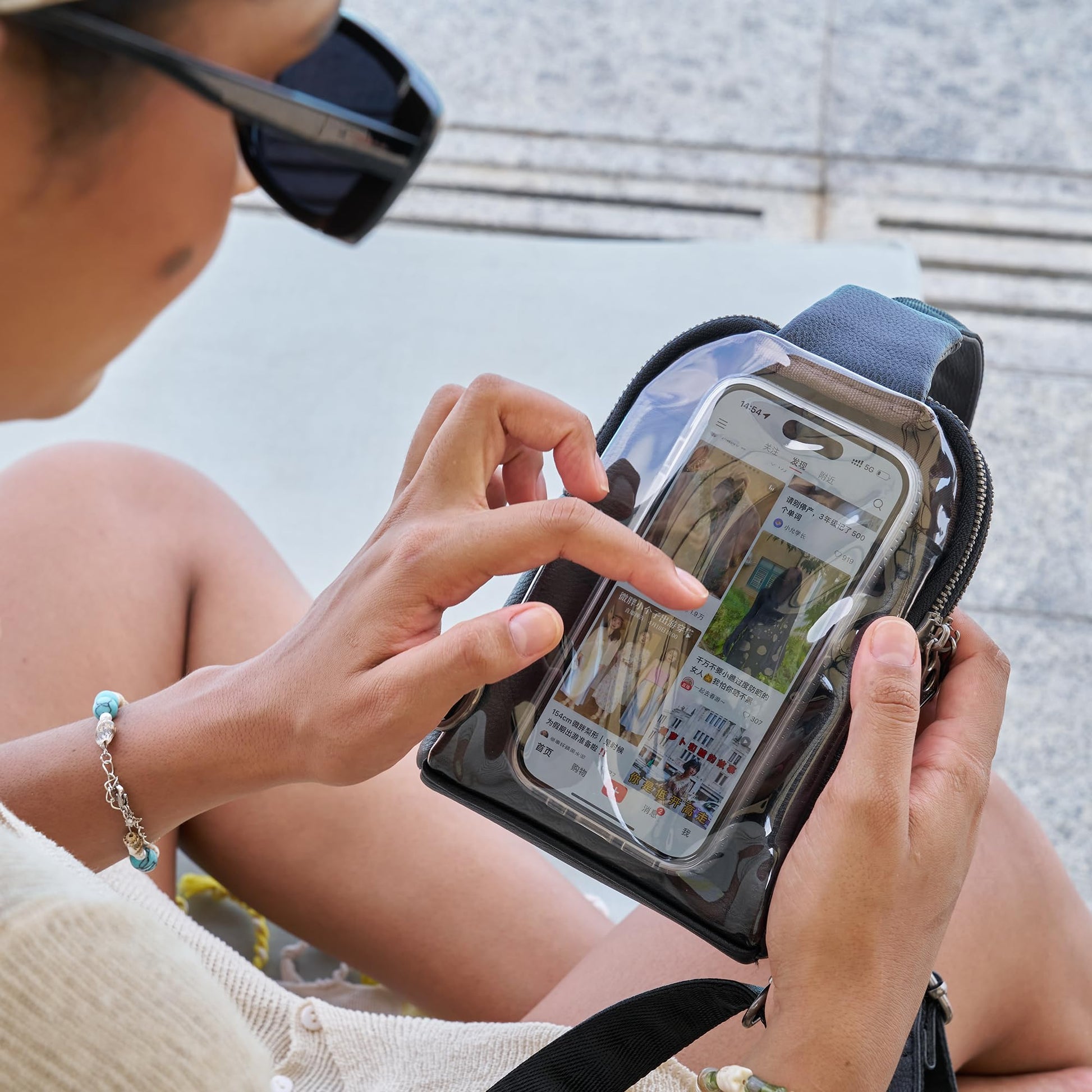 • Touchscreen Function: The highlights of this anti-theft crossbody bag is its touchscreen function. A transparent, touchscreen PTU is on the surface of the bag,without having to take out your cell phone, you can directly conduct a variety of operations on the bag. For example, you can easily check incoming call displays, text message notifications, social media message reminders and other important information.