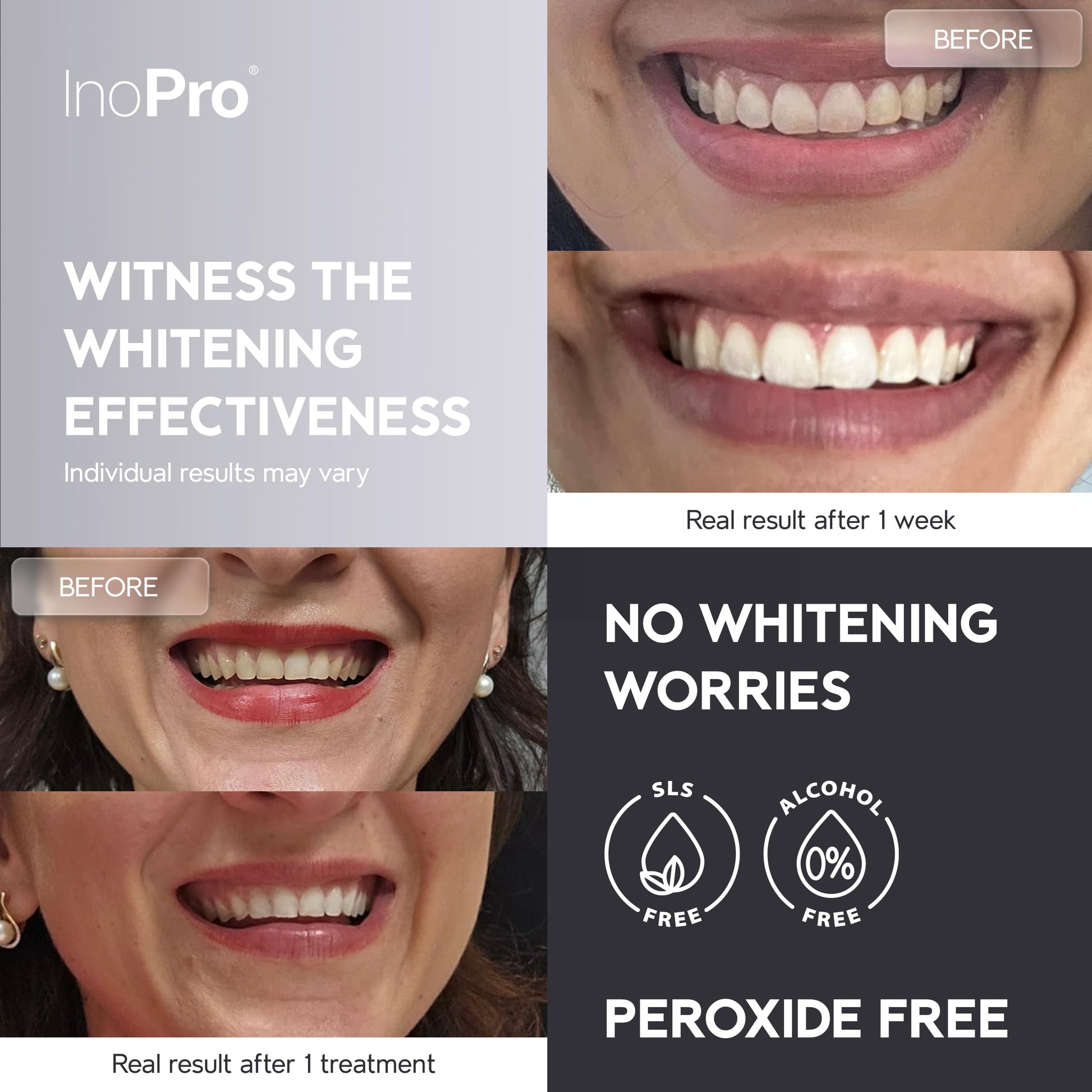 • Gentle, Natural Whitening for Sensitive Smiles: Achieve a brighter smile in just 14 days with zero harsh chemicals. Our transparent Inopro Whitening Strips use only natural ingredients like sea salt, lemon peel oil, coconut oil, papain, and bromelain, which work gently to remove stains without damaging enamel or causing sensitivity. Perfect for those with sensitive teeth who seek effective, natural whitening.