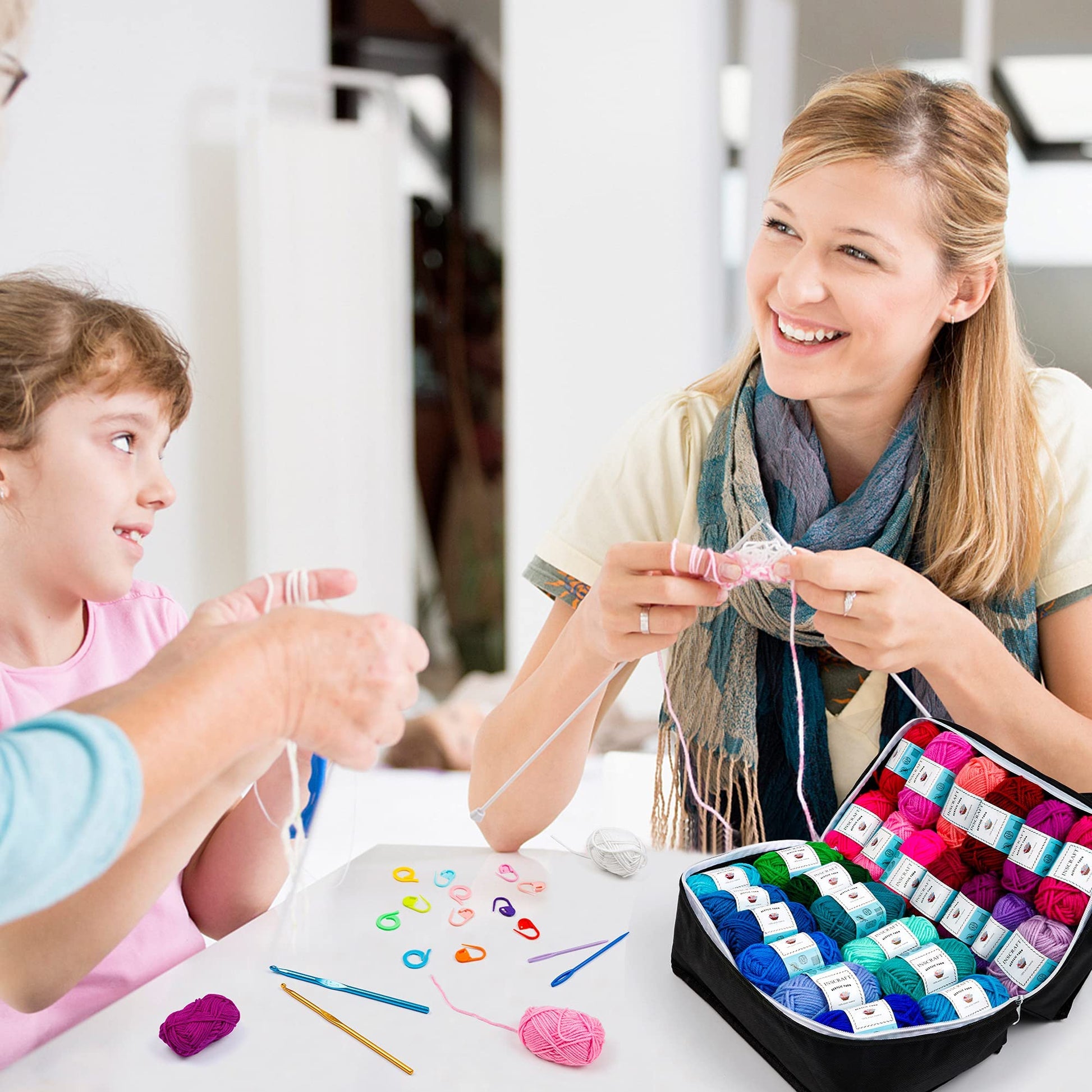 INSCRAFT 62 Acrylic Yarn Skeins, 2170 Yards Yarn for Knitting and Crochet, Includes 2 Crochet Hooks,2 Weaving Needles,10 Stitch Markers, Perfect Beginner Kit for for Adults Kids