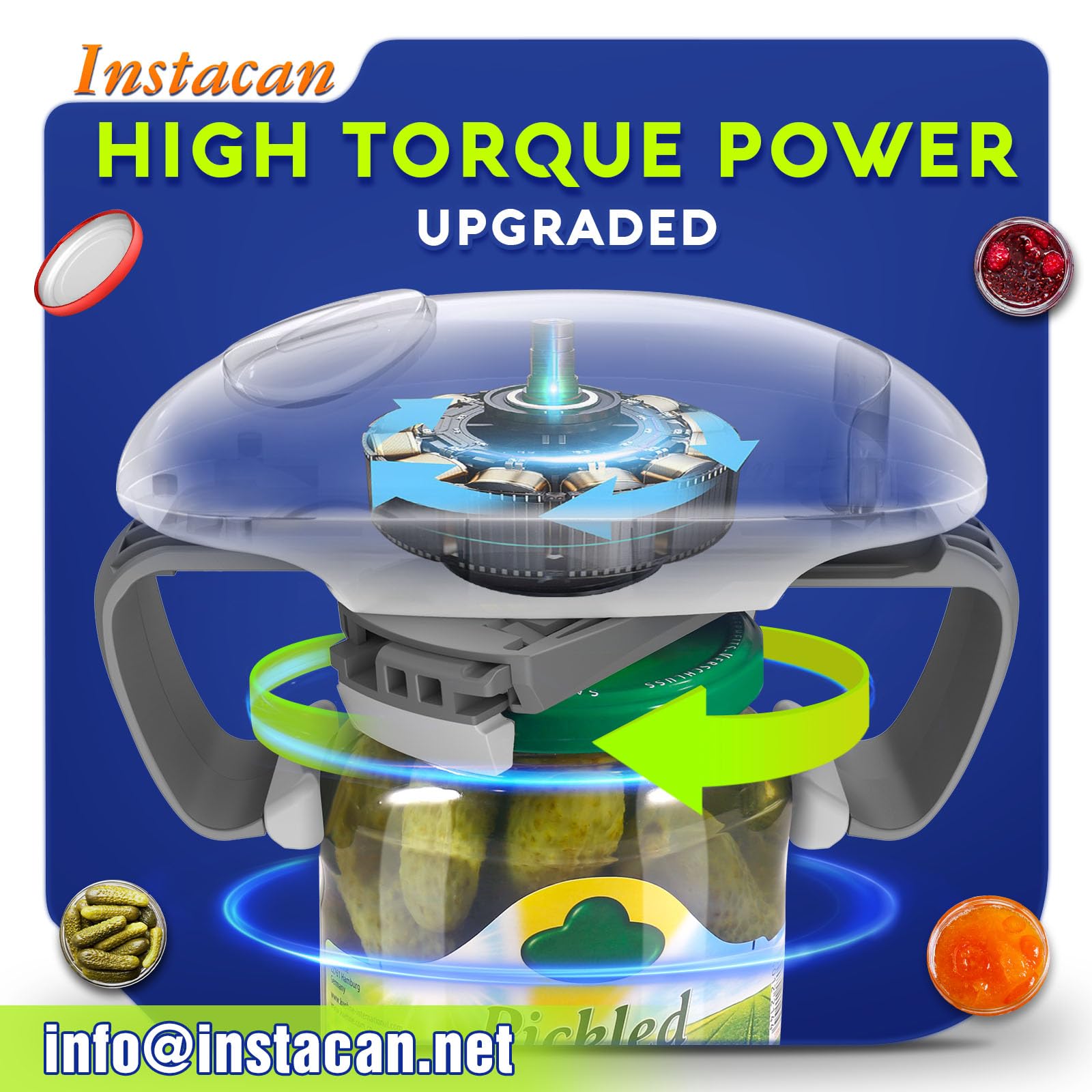 • ๐—›๐—œ๐—š๐—› ๐—ง๐—ข๐—ฅ๐—ค๐—จ๐—˜ ๐—ฃ๐—ข๐—ช๐—˜๐—ฅ - Unlike other traditional jar openers, INSTACAN upgraded powerful electric bottle openers that could fast remove jar lids with high efficiency. Easily solve the problem of opening jars. Importantly, our electric jar openers are applicable to new sealed jar lids
