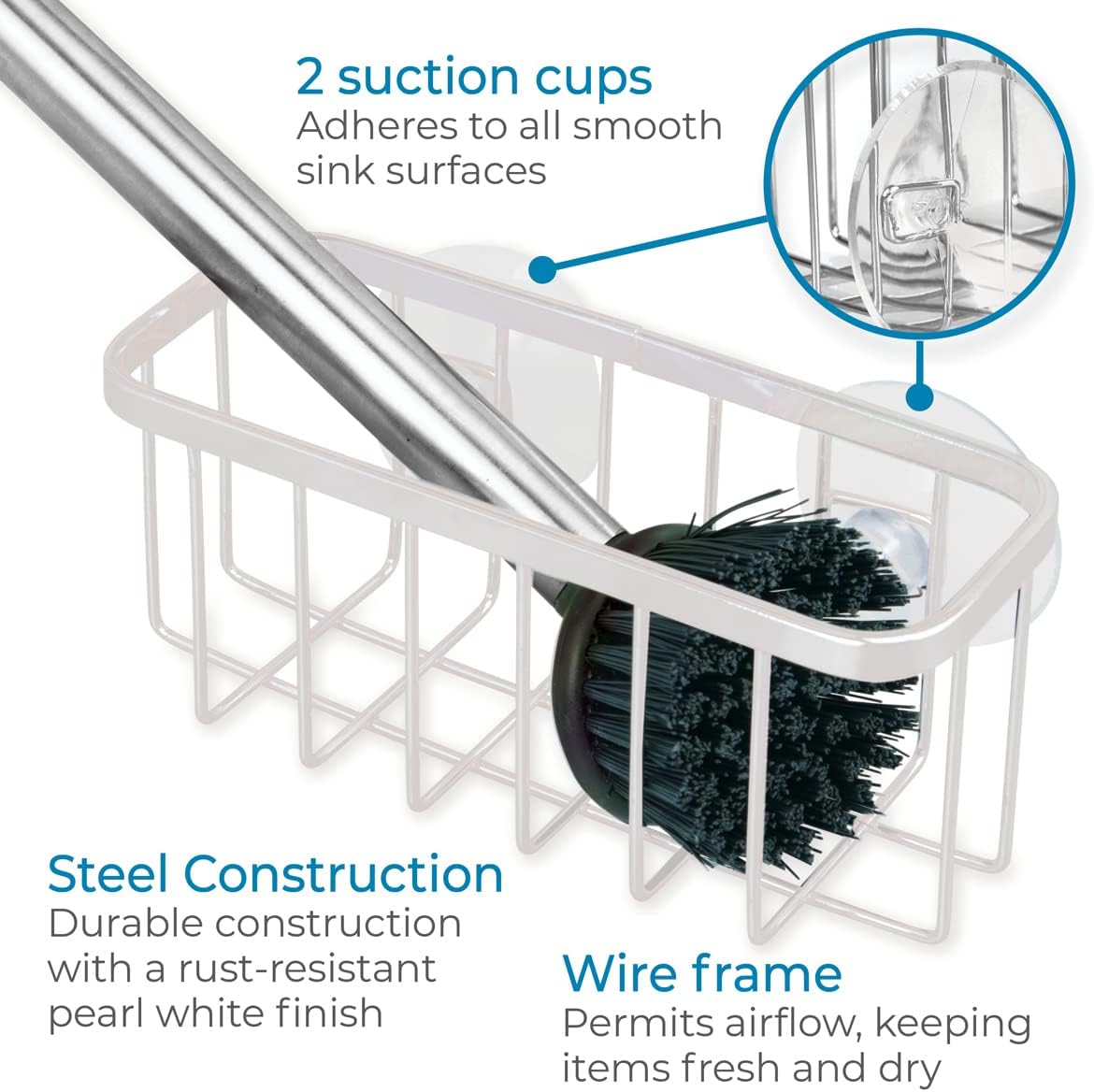 • VERSATILE: Kitchen sink basket holds sponge, scrubber, scouring pad, drain stopper, and more! Great for kitchen, workplace, master bathroom, guest bathroom, kids' bathroom, craft room, classroom, or office bathroom or kitchen sinks