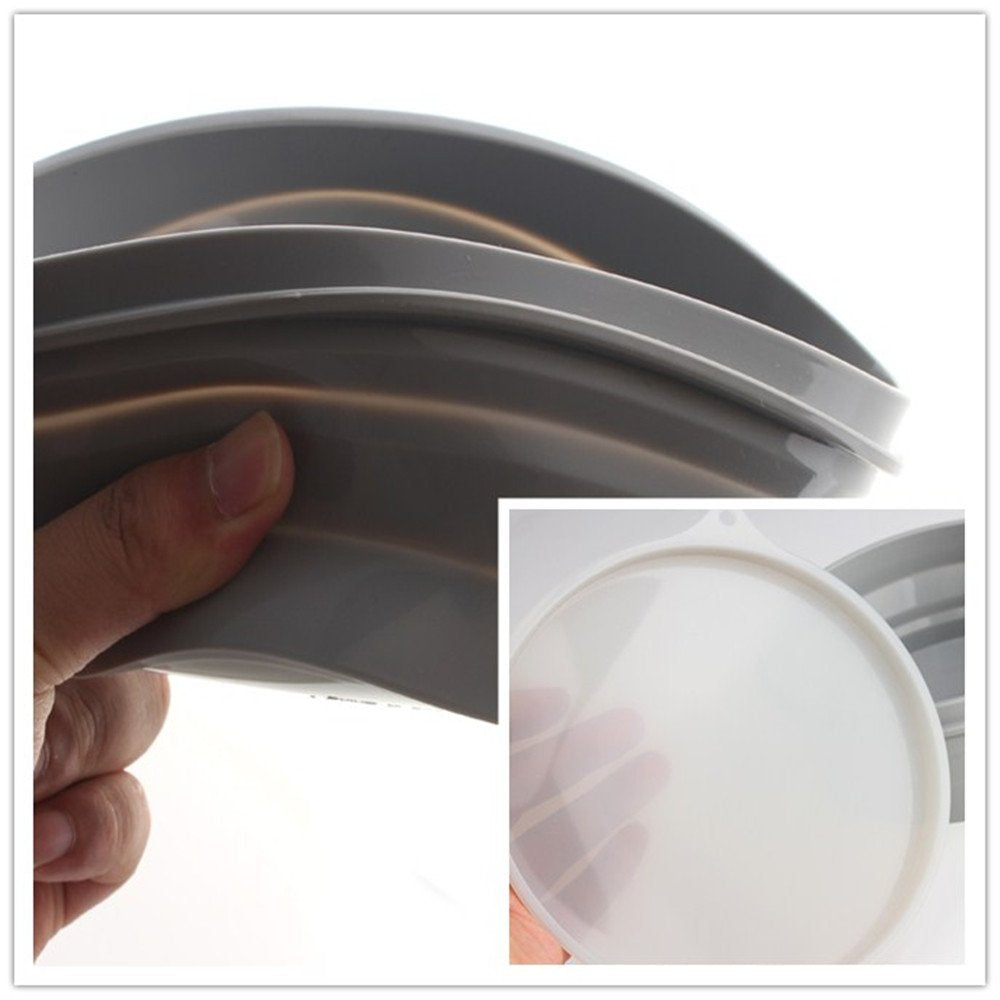 • ✿More Choices: Multiple colors to meet your individual choice. 6.2'in diameter and 2.5' in height when expanded. Volume: 27 oz (800ml) .Weight:240g. The lid isn't completely sealed.