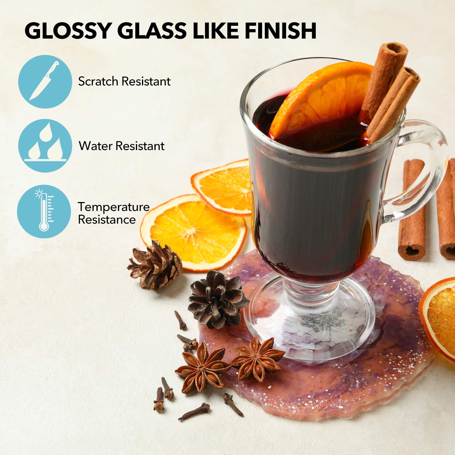 • Diamond Shine and Self-Leveling: Our resin kit is designed to give you a crystal clear finish with a diamond luster that is as hard as stone. In addition, it is self-leveling, so you don't have to worry about fish eyes, fumes, wrinkles, pits or bumps