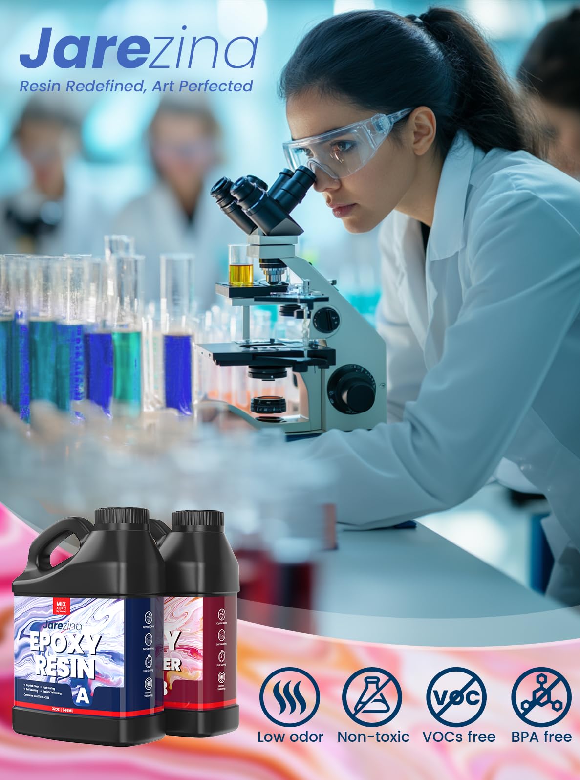 • [SAFE TO USE]: Food safe epoxy resin – Crafted with high-quality raw materials, this epoxy resin is formulated to be free of VOCs, solvents, BPA, and unpleasant odors. The cured Jarezina epoxy resin meets food grade standards. Beginners are encouraged to conduct small tests beforehand, making it a user-friendly choice for both novices and professionals.