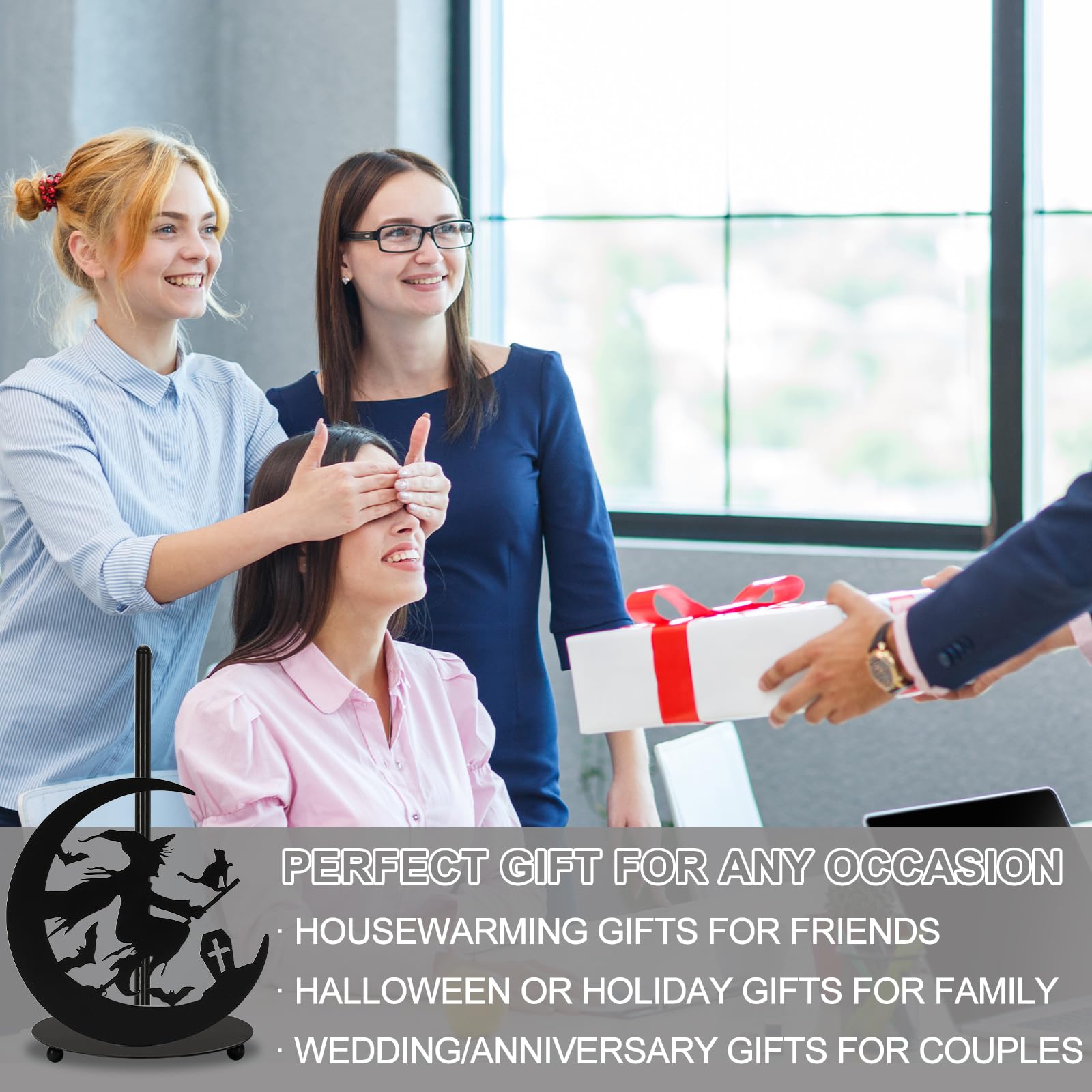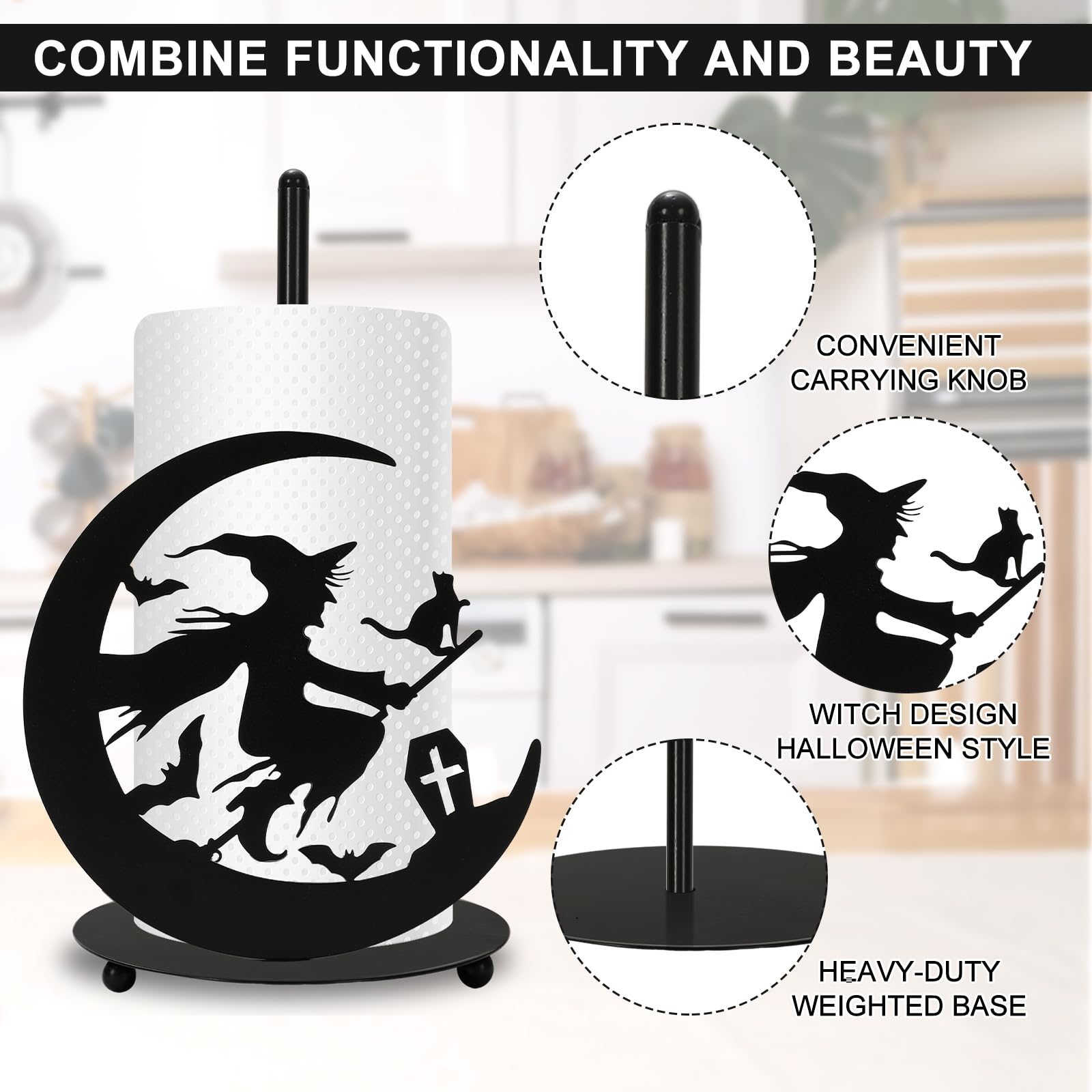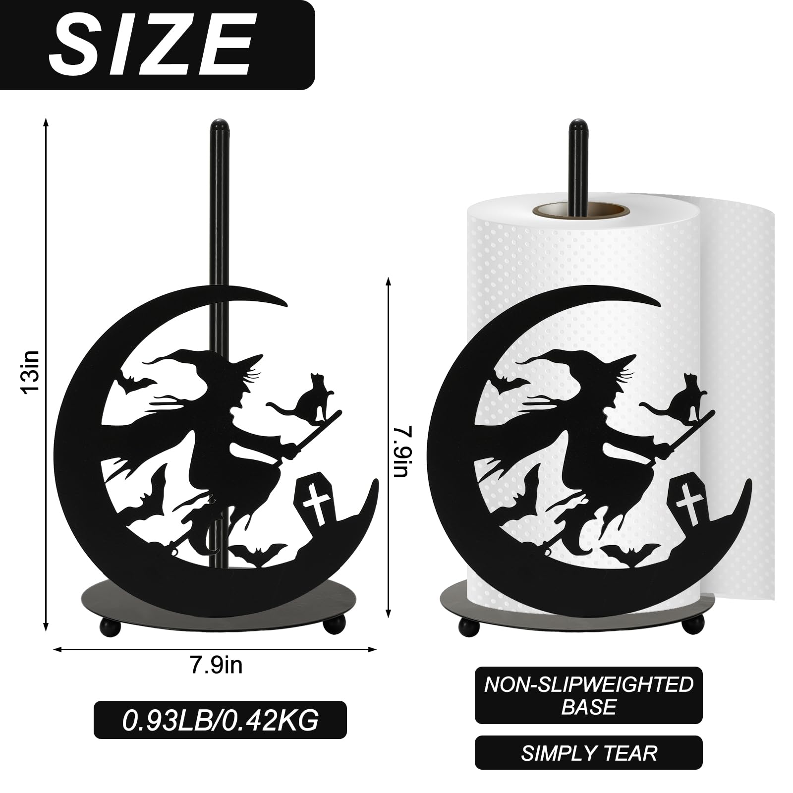 • DELICATE DESIGN: You will receive a black metal paper towel holder, decorated with black witch, moon and bat, exquisite and practical, full of Halloween festive feelings, will match perfectly with any accessories in the kitchen.