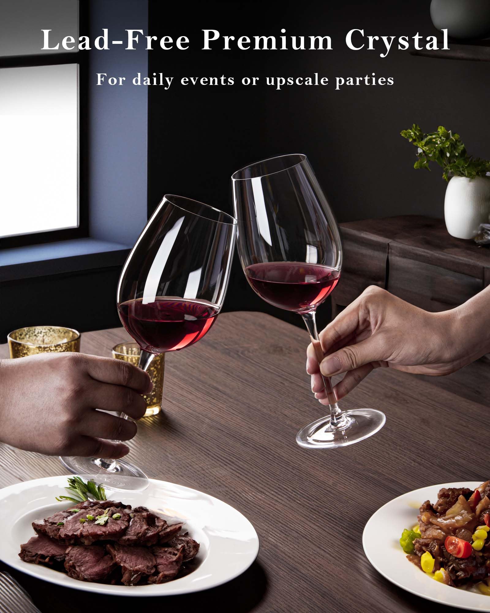 • Ultra Clear and Thin but Sturdy: Crystal Glass is perfectly clear and the ultra thin rim with cold cutting enhancing the perceived quality and flavor of any red/white wine. These red/white wine glasses are not too thick yet strong enough to stand daily washing