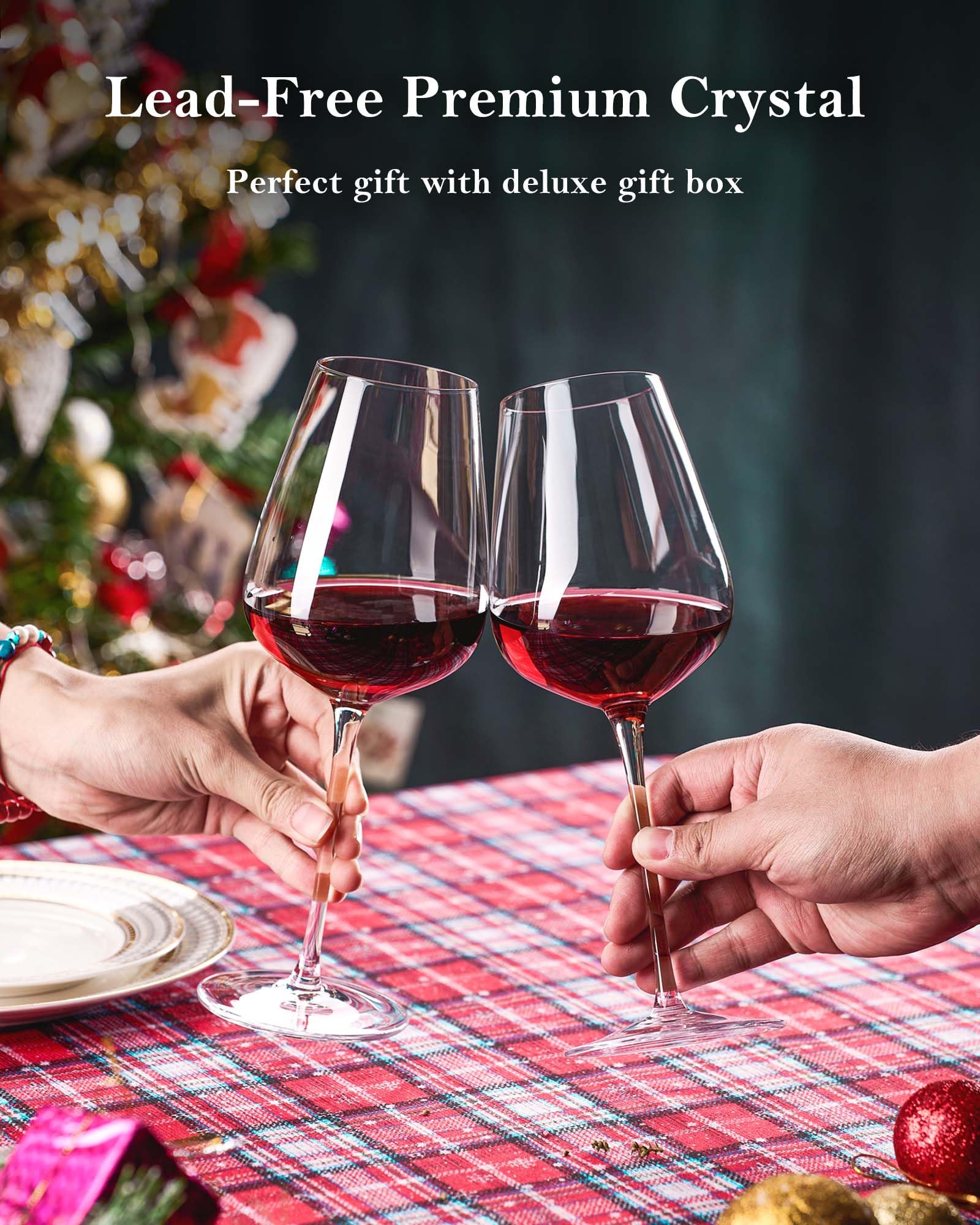 JBHO Hand Blown Italian Style Crystal Bordeaux Wine Glasses - Great Gift Packaging - Red Wine Glasses Lead-Free Premium Crystal Clear Glass - Set of 4-18 Ounce