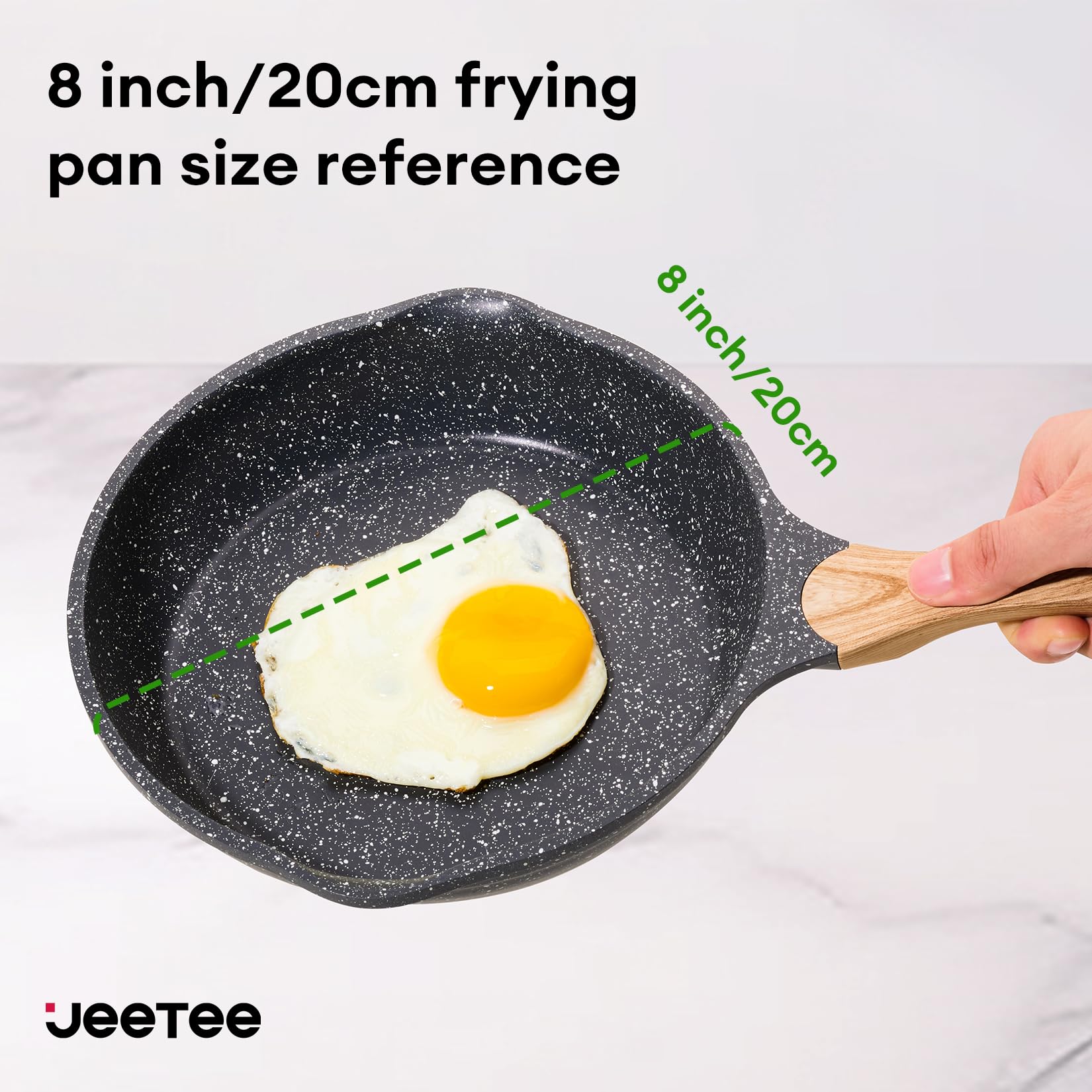 JEETEE 8 Inch Nonstick Frying Pan, Stone Coating Cookware, Nonstick Omelette Pan with Heat-Resistant Handle, Induction Skillet for Eggs (Grey)