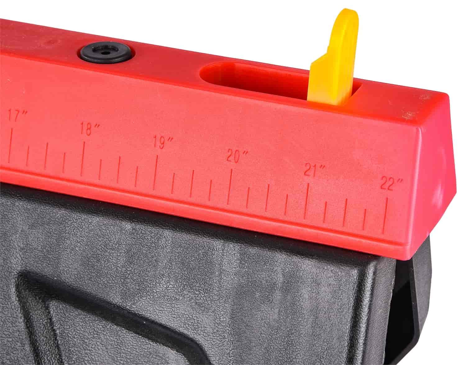 • Saw horses built to last from sturdy, weather-resistant polypropylene to provide superior support and a stable, solid work surface. Built-In Measuring Scale (1 in. - 22 in.)