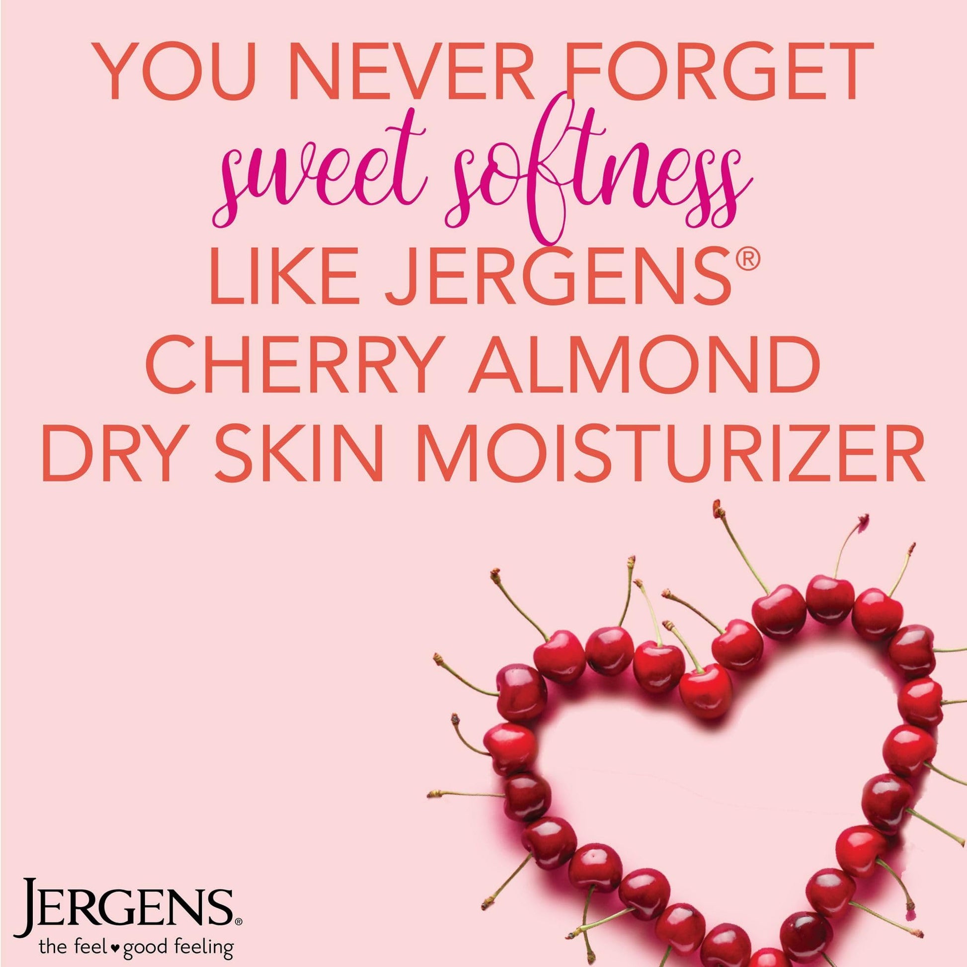 Details: Restore your dry skin with Jergens Original Scent Dry Skin Moisturizer! This body moisturizer is designed for normal to dry skin. Hydrate and restore your skin's luminosity, tone, and texture with Jergens cherry almond lotion. Reveal softer, more radiant skin when you smooth on Jergens Original Scent Dry Skin Body Moisturizer with Cherry Almond Essence. It provides long-lasting, moisture-rich hydration and noticeably softer, smoother skin. Our formula, with a unique HYDRALUCENCE blend, nourishing hydrators, and Jergens Cherry Almond essence, leaves skin deeply luminous and lightly scented. The best body lotion for dry skin, this lotion contains nourishing hydrators and cherry almond essence for visibly beautiful skin. With the signature Jergens original scent, this hand and body cream for dry skin is carefully formulated for optimal dry skin relief. Jergens hand and body lotion hydrates and moisturizes dry and cracked skin for extra dry skin relief. As a body lotion, this body cream rejuvenates cracked skin for long lasting hydration and optimal moisture. OUR STORY: Since 1901, Jergens skin care has been the trusted brand for comforting moisture. That’s because everything we do is designed to help you feel good – soothing relief from dryness, a touch of summer color, a fruity scent that makes Monday feel like Friday. We’re not here to stop at skin deep. We’re here to help you feel truly, deeply, skin-to-soul comfortable, with a few surprises along the way. We bottle all that up into the Feel-Good Feeling of Jergens. Satisfaction Guarantee. Limitations may apply.