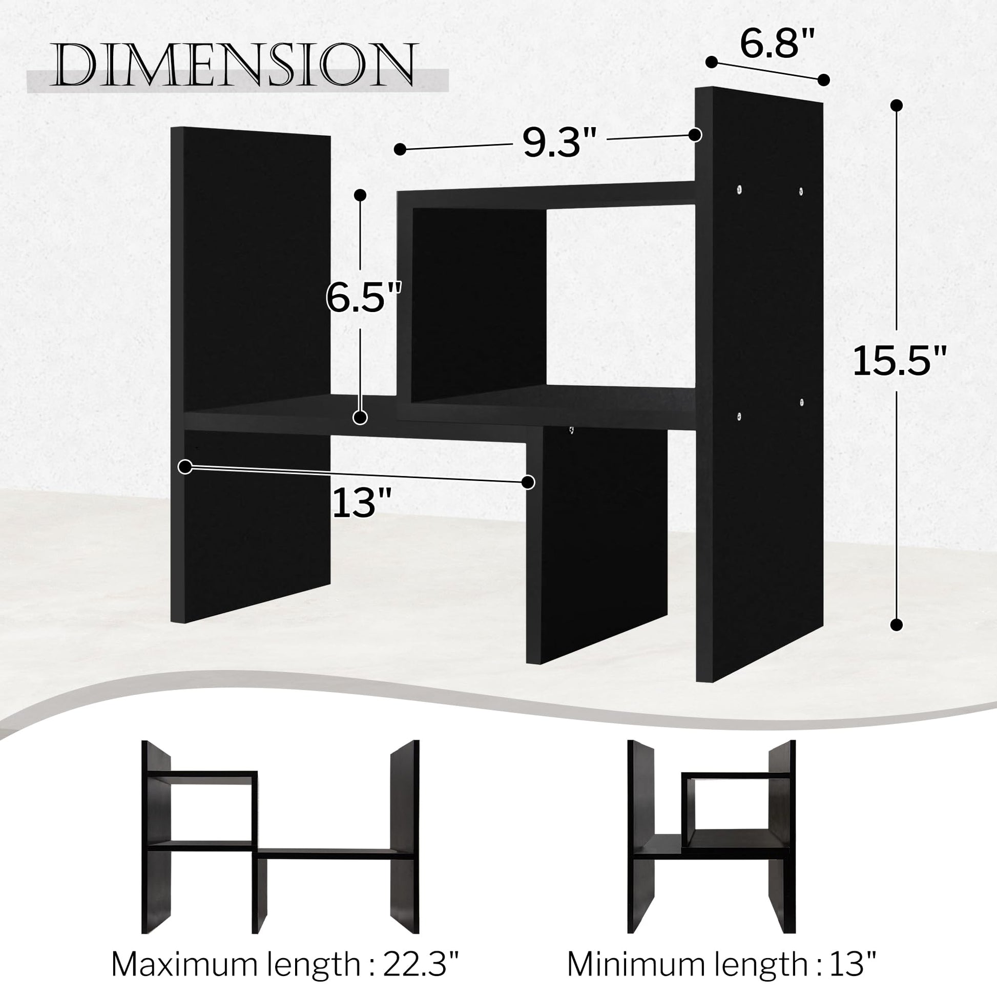 Jerry & Maggie Desktop Organizer Office Storage Rack Adjustable Wood Display Shelf, Birthday Gifts Toy Home Decor Free Style Rotation Display True Natural Stand Shelf (Black)