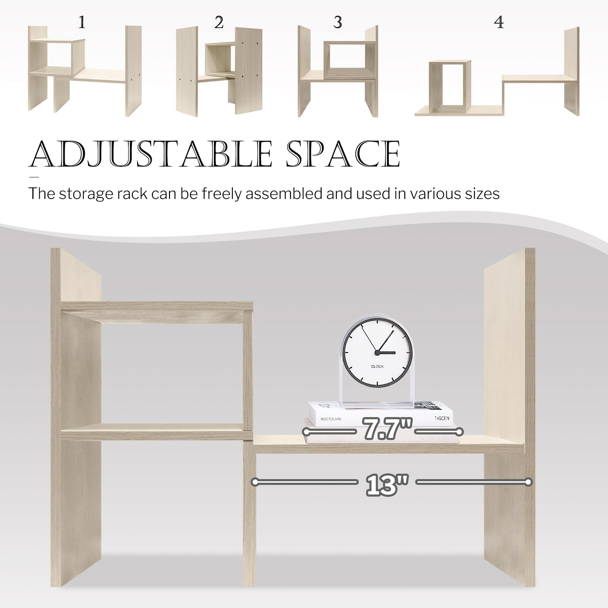 Jerry & Maggie Desktop Organizer Office Storage Rack Adjustable Wood Display Shelf, White, 5 Units, 16"L x 15.8"H x 6.8"W
