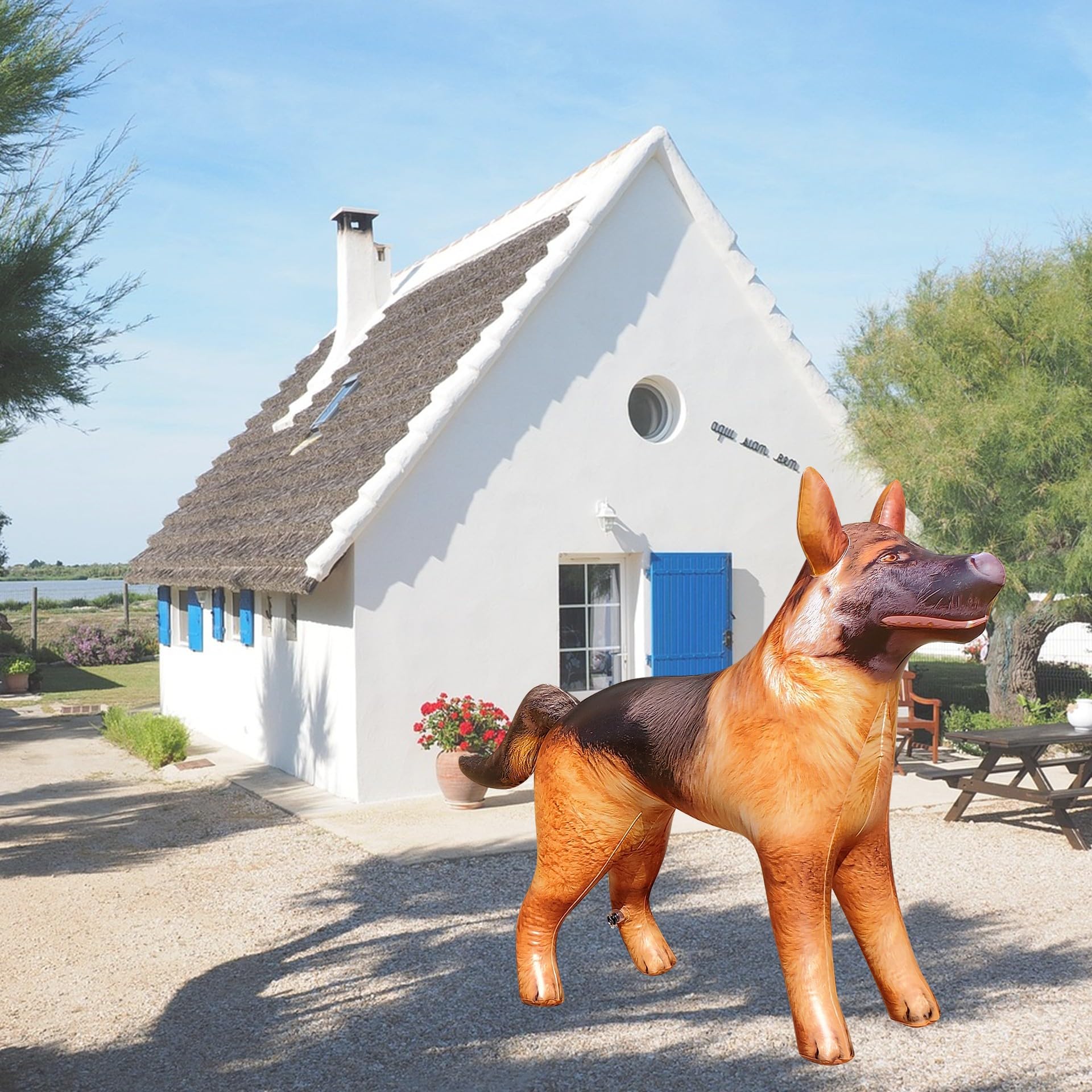 • WHAT’S INCLUDED: Inflatable German Shepherd x1 packed in a resealable bag; Pump and repair kit not included