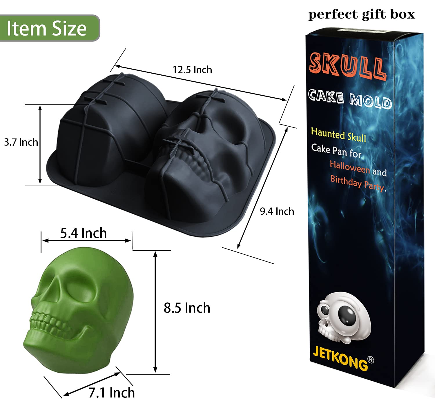 JETKONG Extra Large Silicone Skull Cake Mold Haunted Skull Baking Cake Pan for Halloween and Birthday Party
